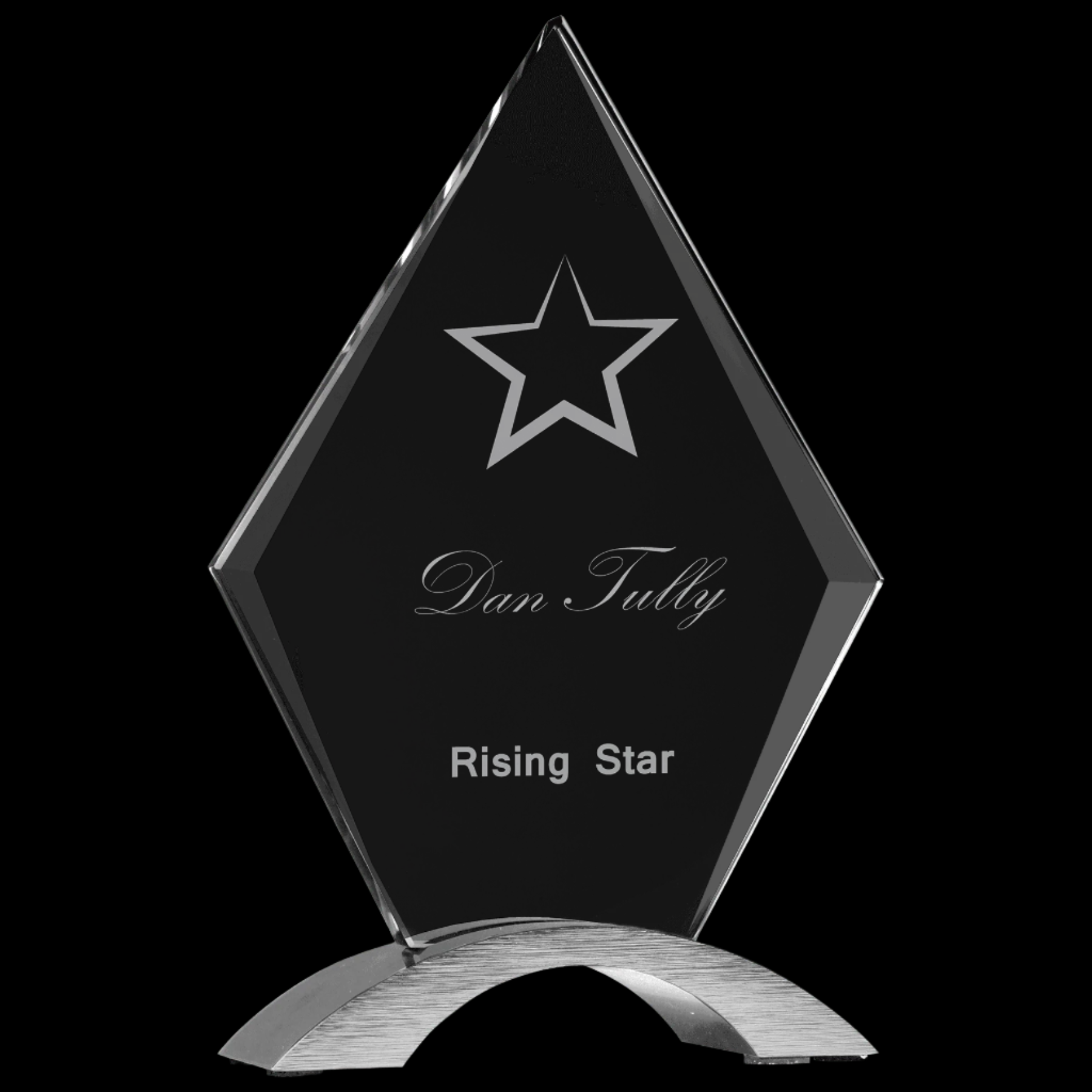 Diamond Cosmic Acrylics feature a .375" thick acrylic panel securely attached to a satin finish aluminum base. Available in various sizes and shapes, this design combines durability with a sleek, modern aesthetic, making it ideal for professional displays or decorative applications requiring both strength and style.