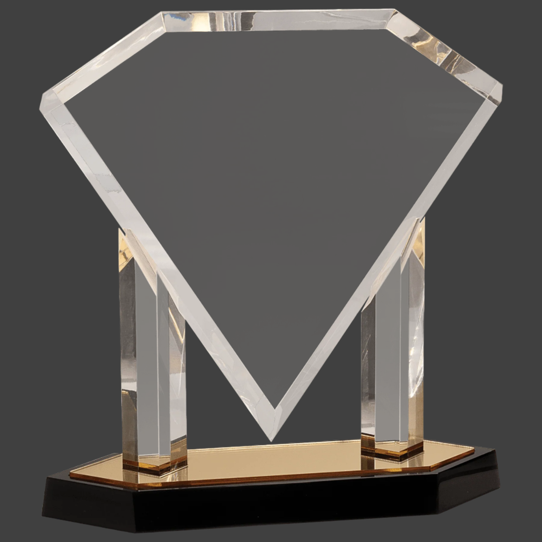 Floating Diamond Acrylics Feature Clear Acrylic Posts Mounted to a 1" Mirrored Acrylic Base.