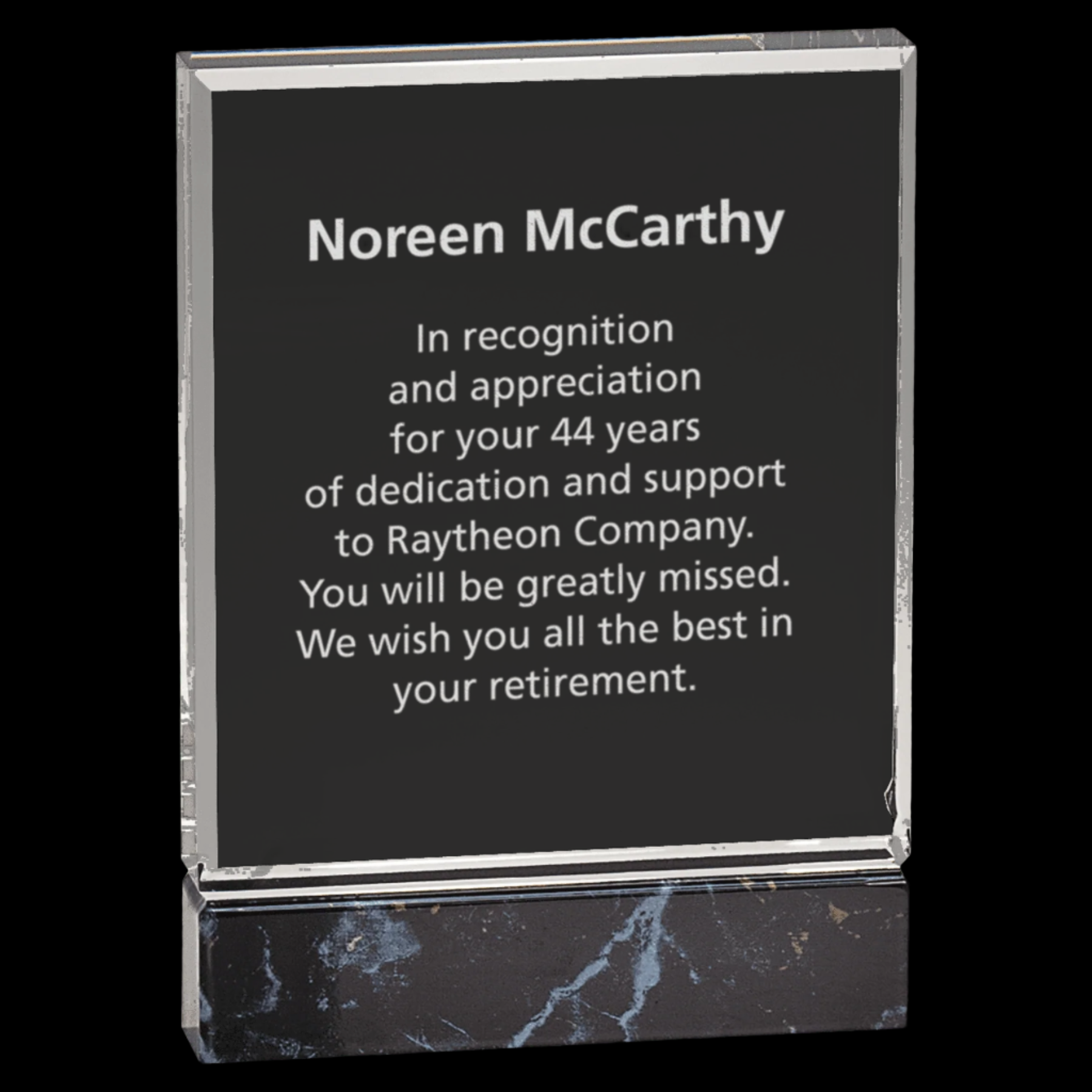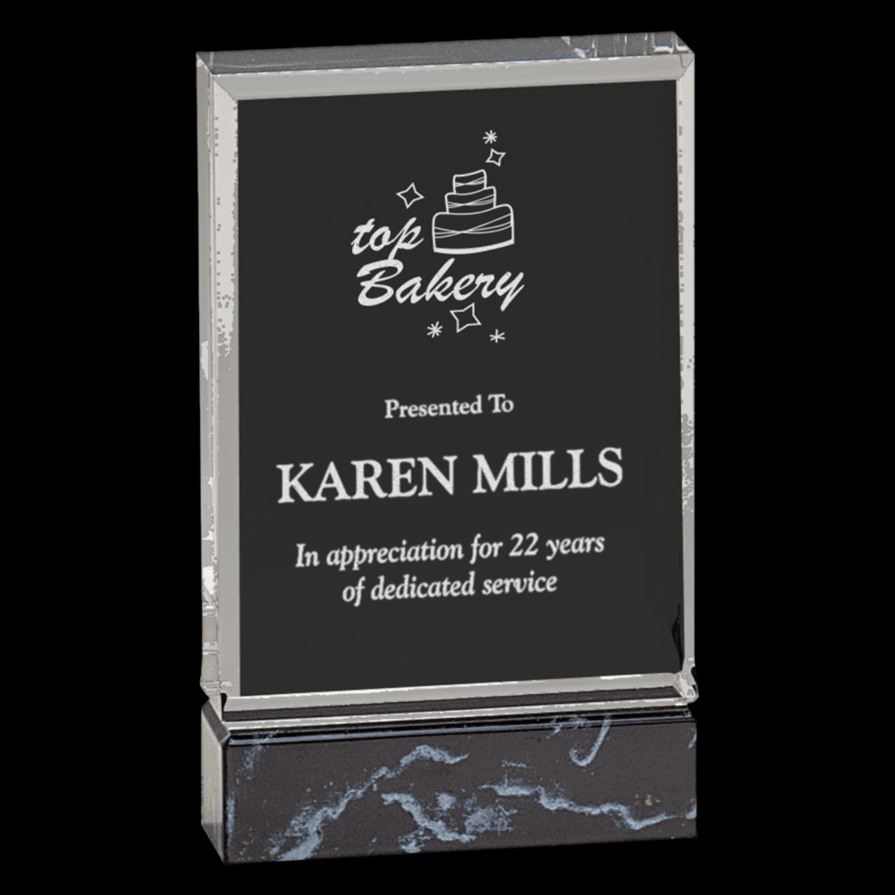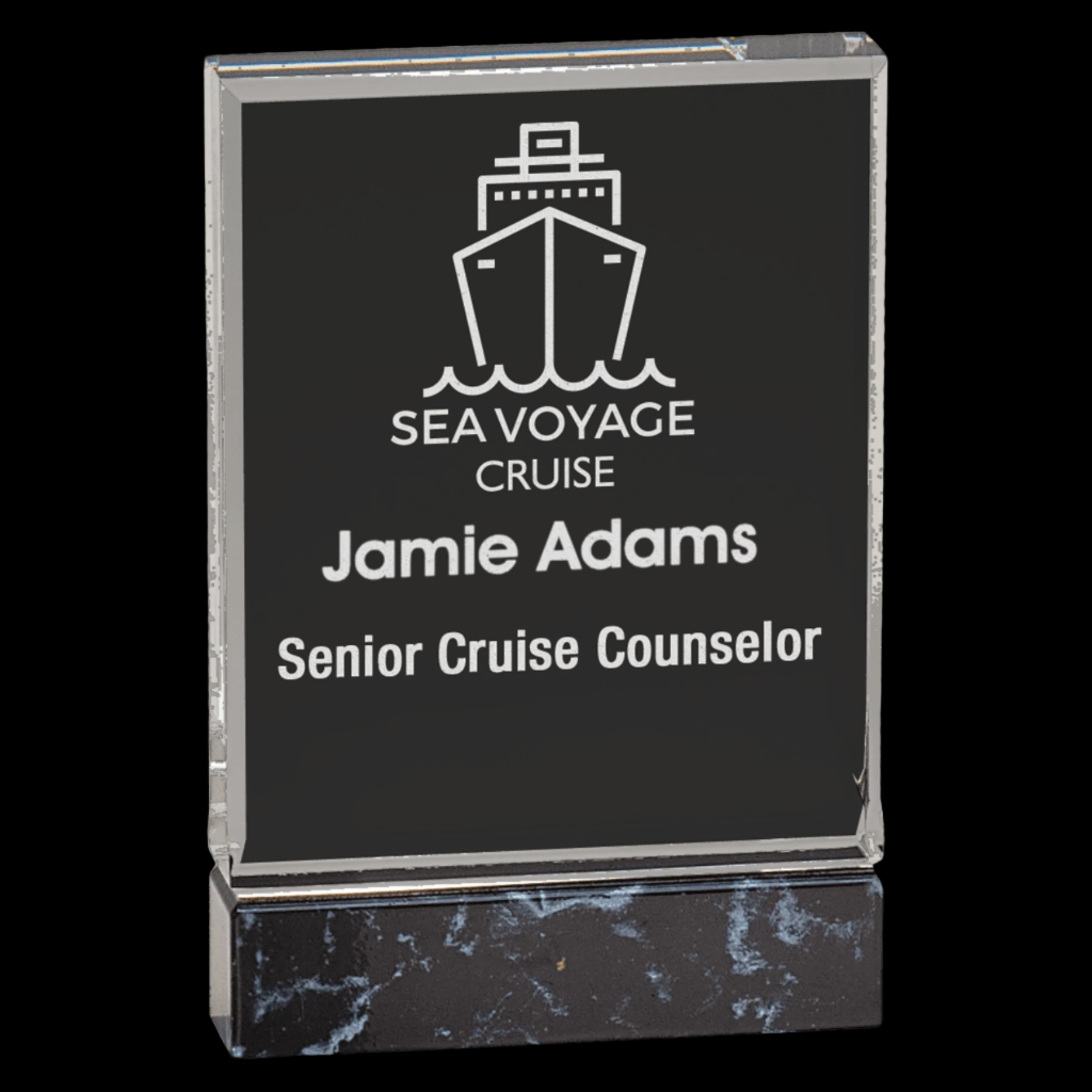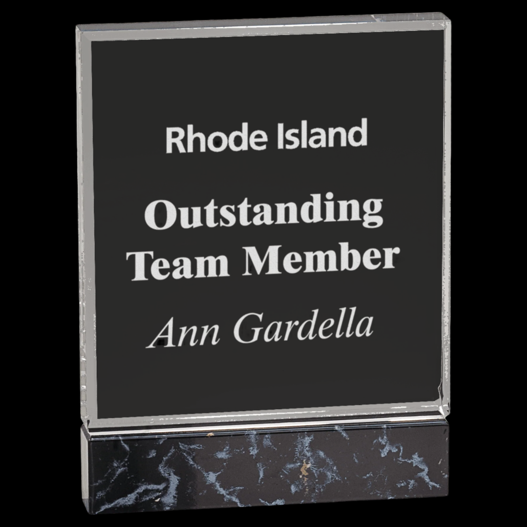 Fusion Acrylics are Self-Standing and 1" Thick. This 1-Piece Acrylic Award Has Hydrofoil Graphics That Provide a Beautiful Black Marble Finish.