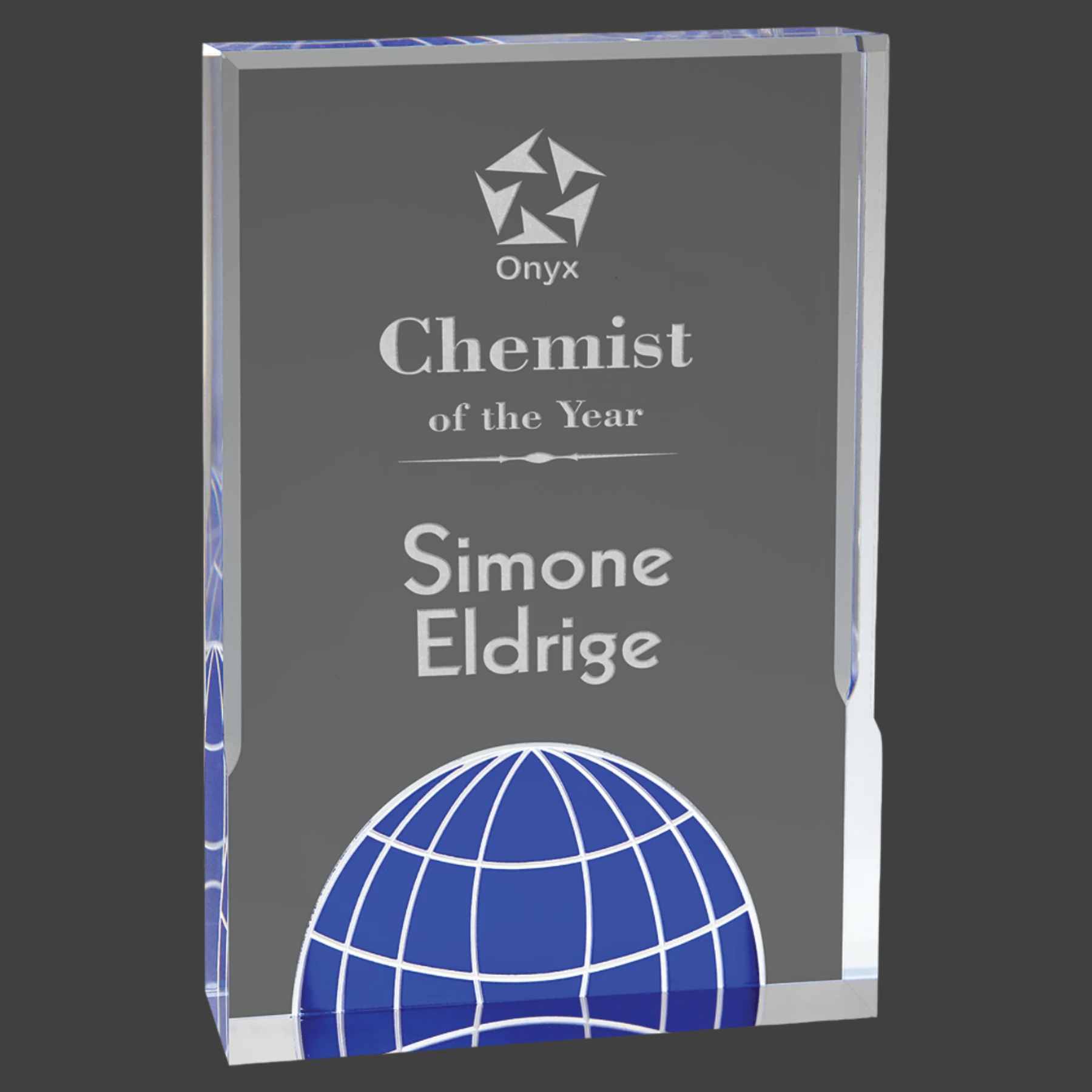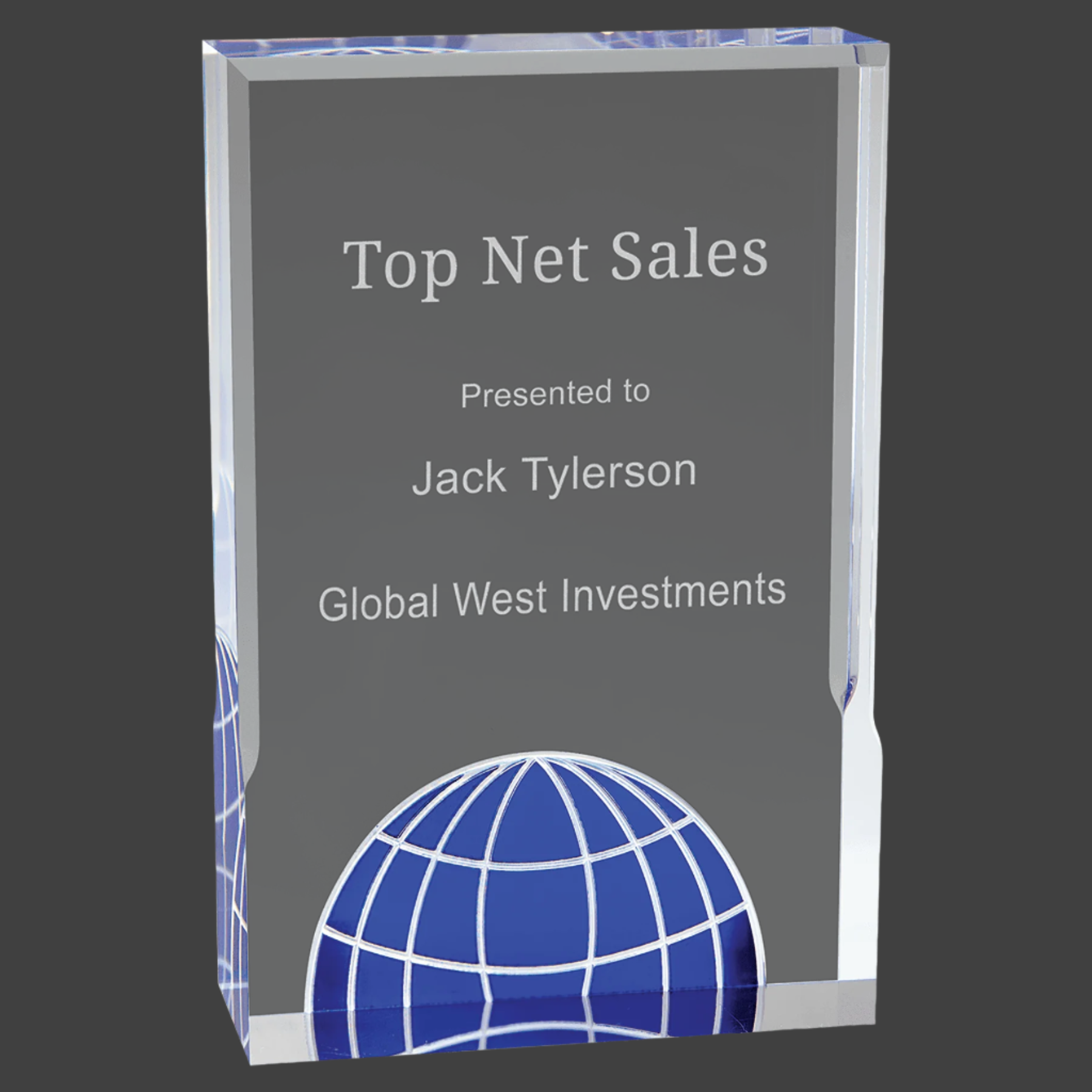 Globe Acrylics are Self-Standing and 1" Thick. Available in 2 Vivid Colors - Blue and Green. The Perfect Way to Showcase Achievements.