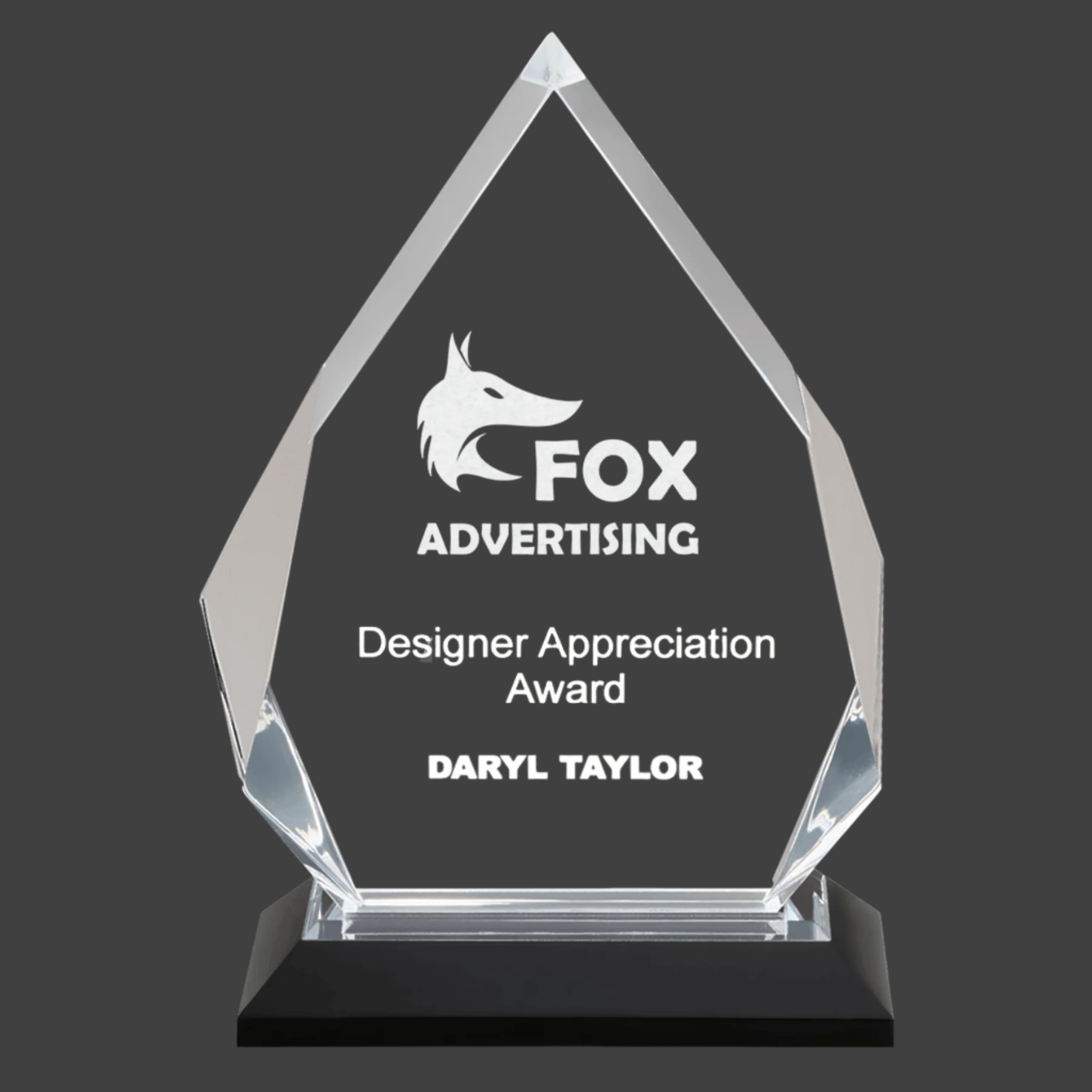 Silver Diamond Impress Acrylics feature a 1-inch thick design with an integrated colored mirror base, enhancing both durability and visual appeal. The total height includes the base, ensuring precise sizing. Available in various sizes and colors, these acrylics offer versatile options for professional displays and presentations.