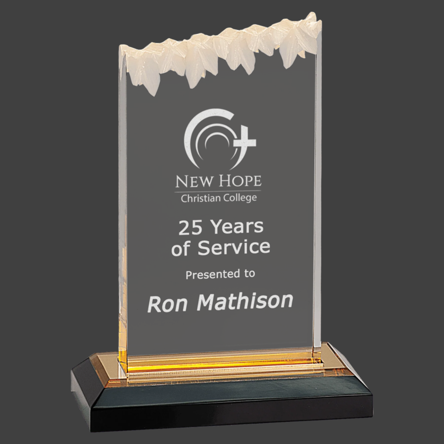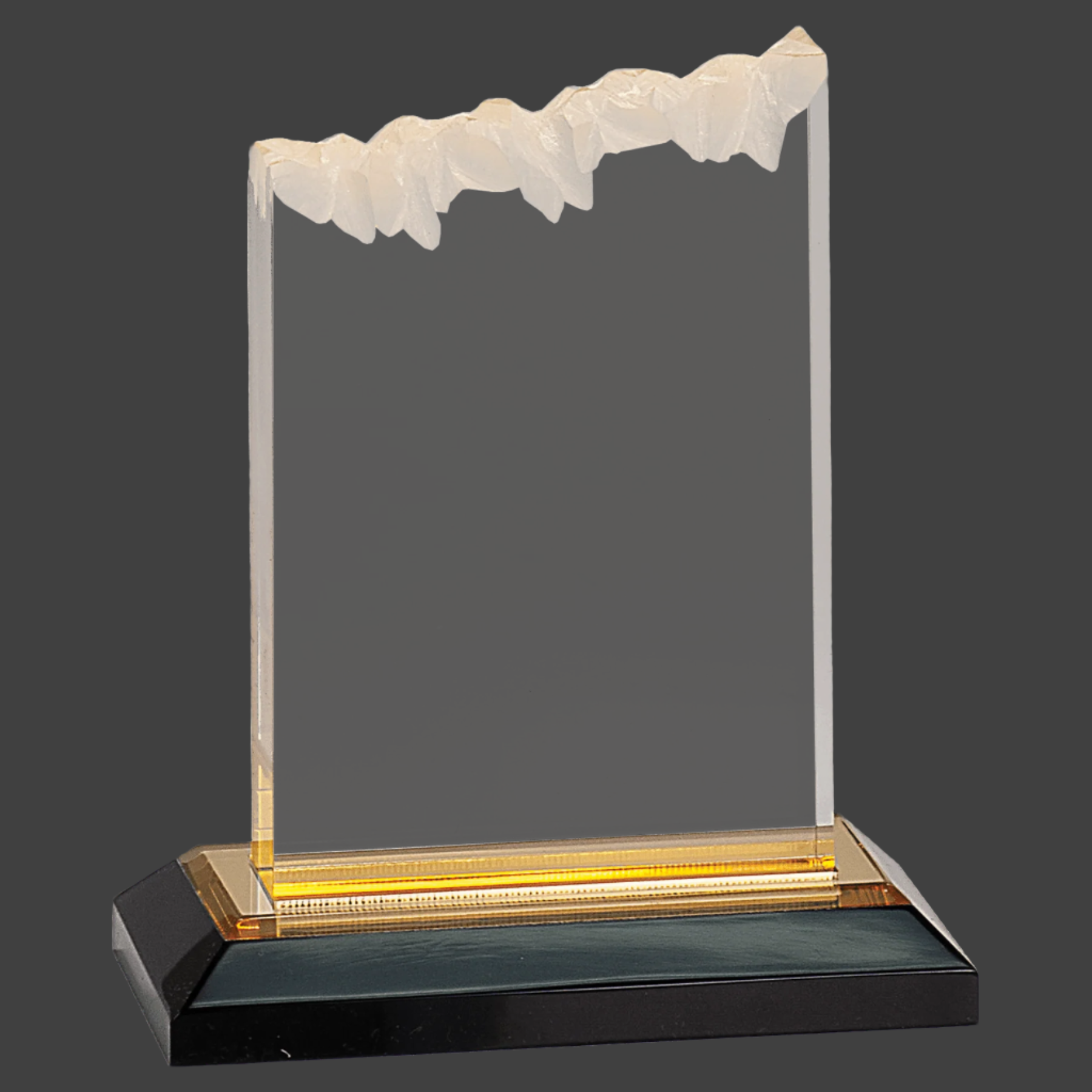 Gold Frosted Impress Acrylics feature a 1" thick frosted acrylic panel mounted on a colored mirror base, combining durability with elegant design. The total height includes the base, ensuring precise sizing for your display needs. Available in various sizes and colors, these acrylics offer versatile options for professional presentations and decorative applications.