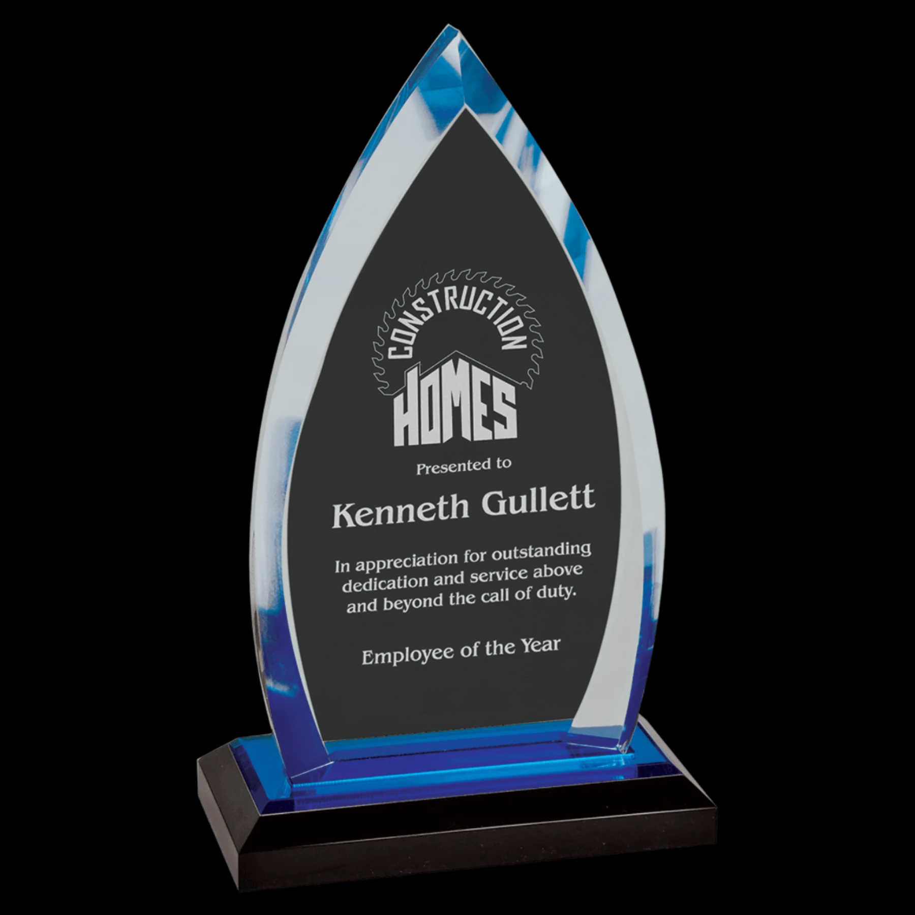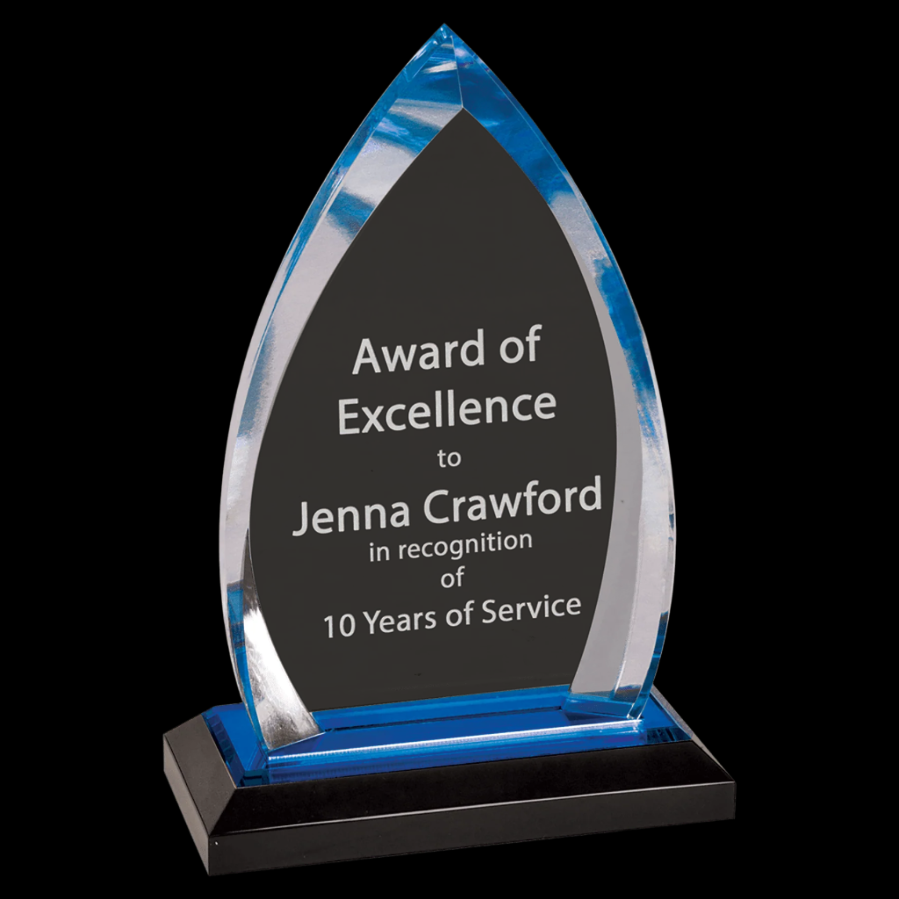 Oval Impress Acrylics Come with a Colored Mirror Base. They are 1" Thick. Height Measurement Includes Base. Available in Multiple Different Sizes and Colors.