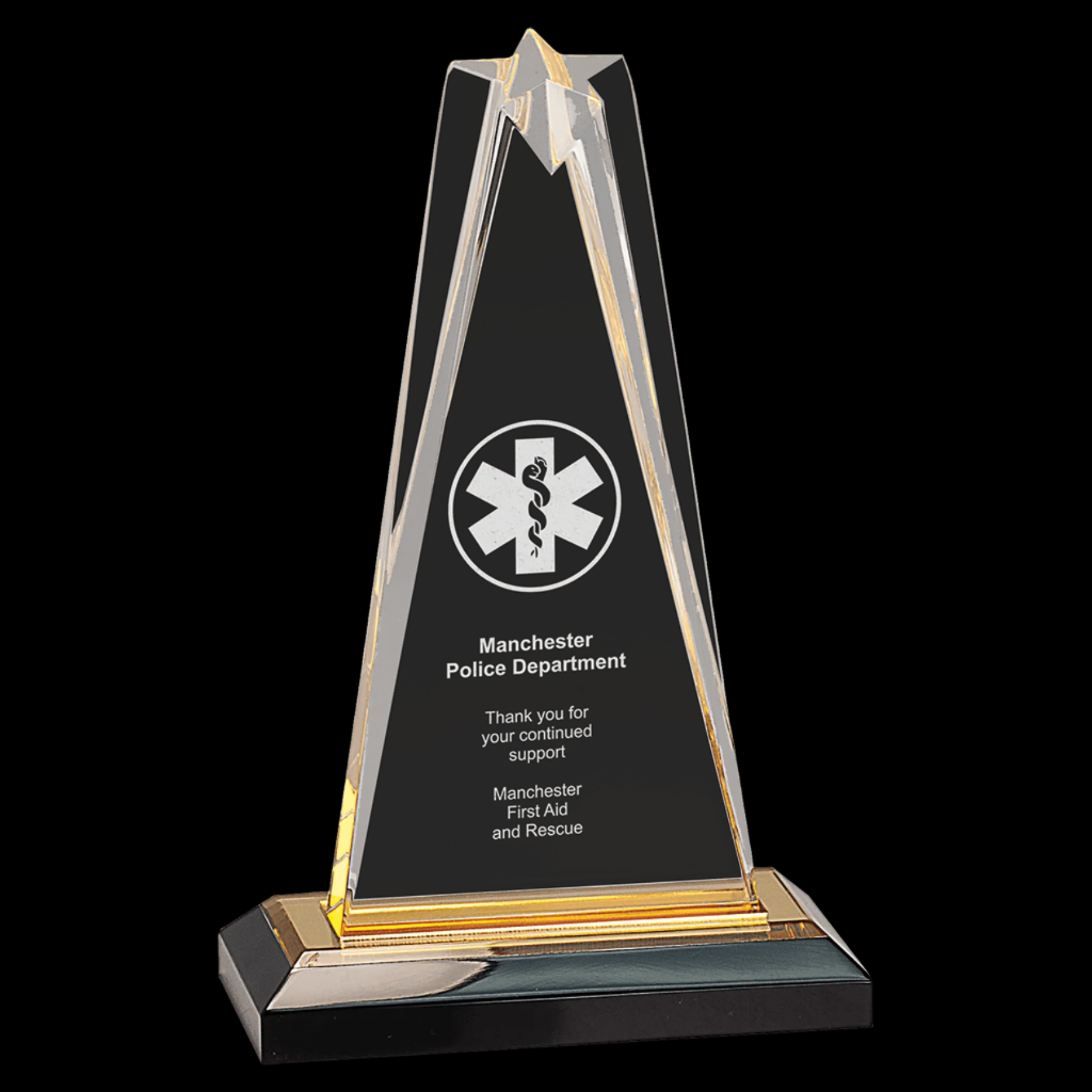 Star Impress Acrylics feature a vibrant colored mirror base and a sturdy 1" thickness, with height measurements including the base for precise sizing. Available in various sizes and colors, the Gold Star Impress Acrylic offers a premium, customizable option for displays or awards requiring both durability and visual impact.