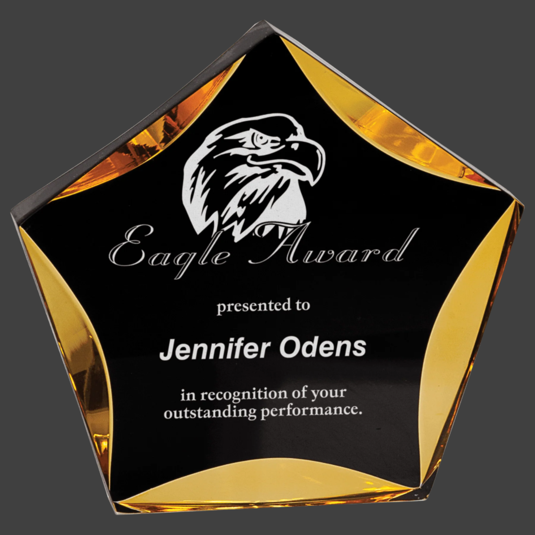 Luminary Star Acrylics are Self-Standing and 1" Thick. Available in Multiple Sizes, Styles, and Colors.