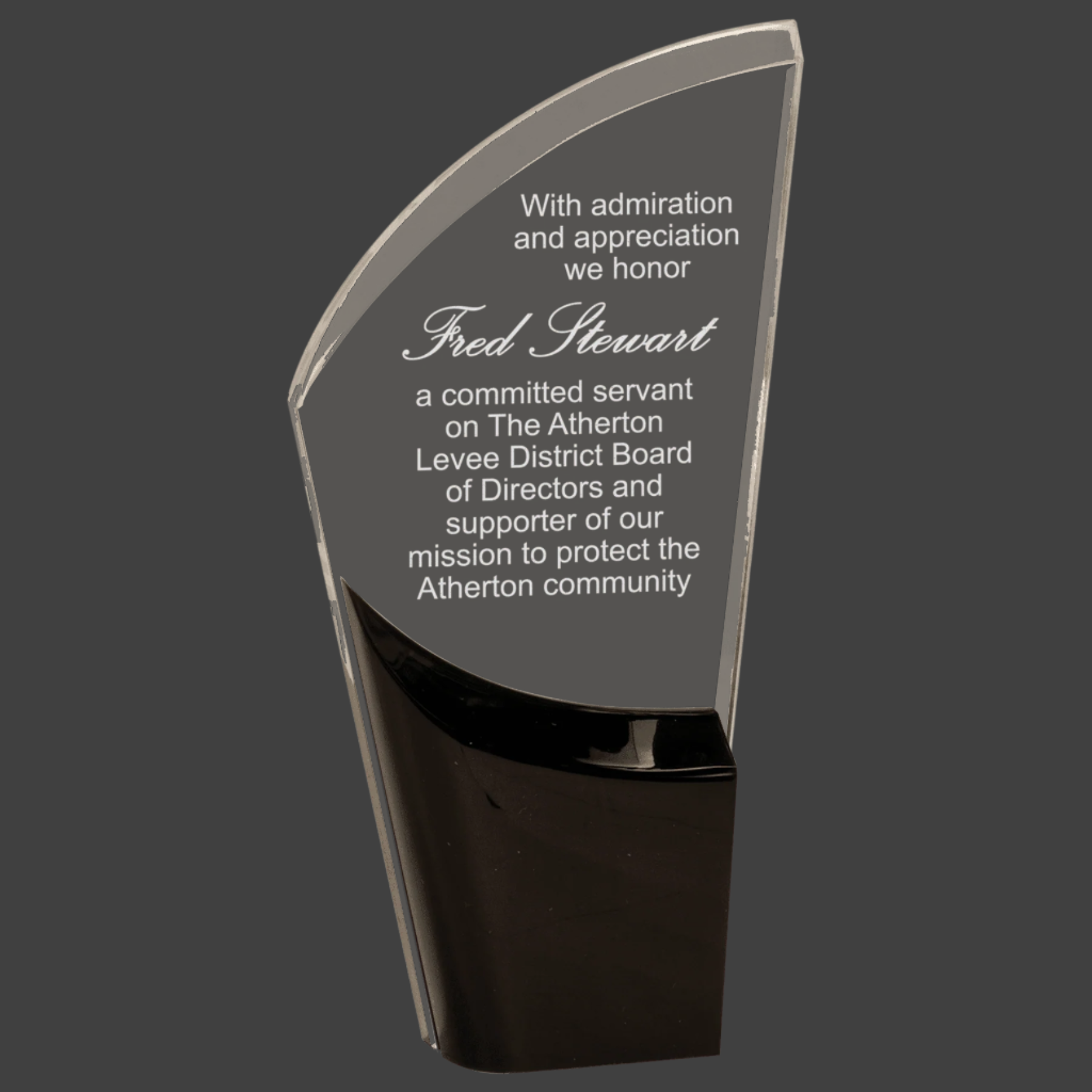 Lunar Acrylics are Self-Standing and 1" Thick. Available in Multiple Sizes and Colors.