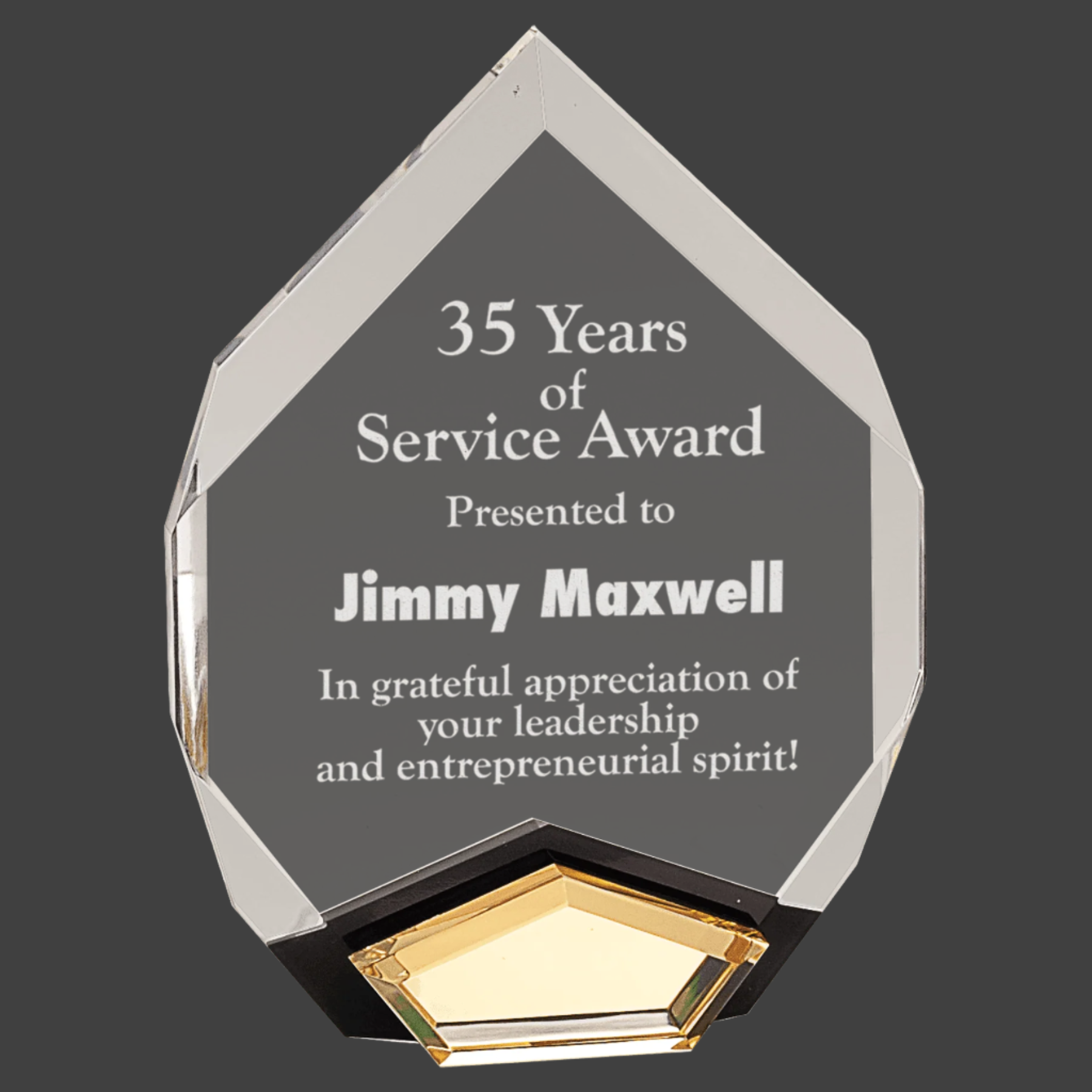 Marquis Acrylic Awards feature a sturdy, self-standing design with a thickness of 0.75 inches, ensuring durability and presence. Available in a variety of colors and sizes, these awards offer versatile options to suit different recognition needs with a professional finish.