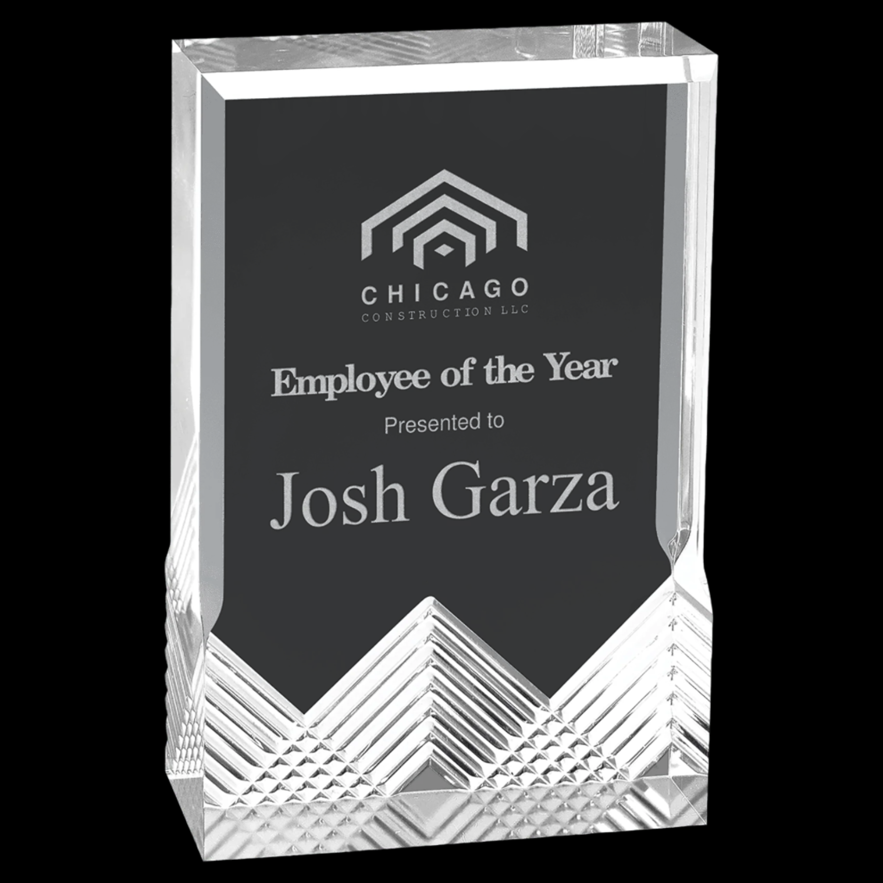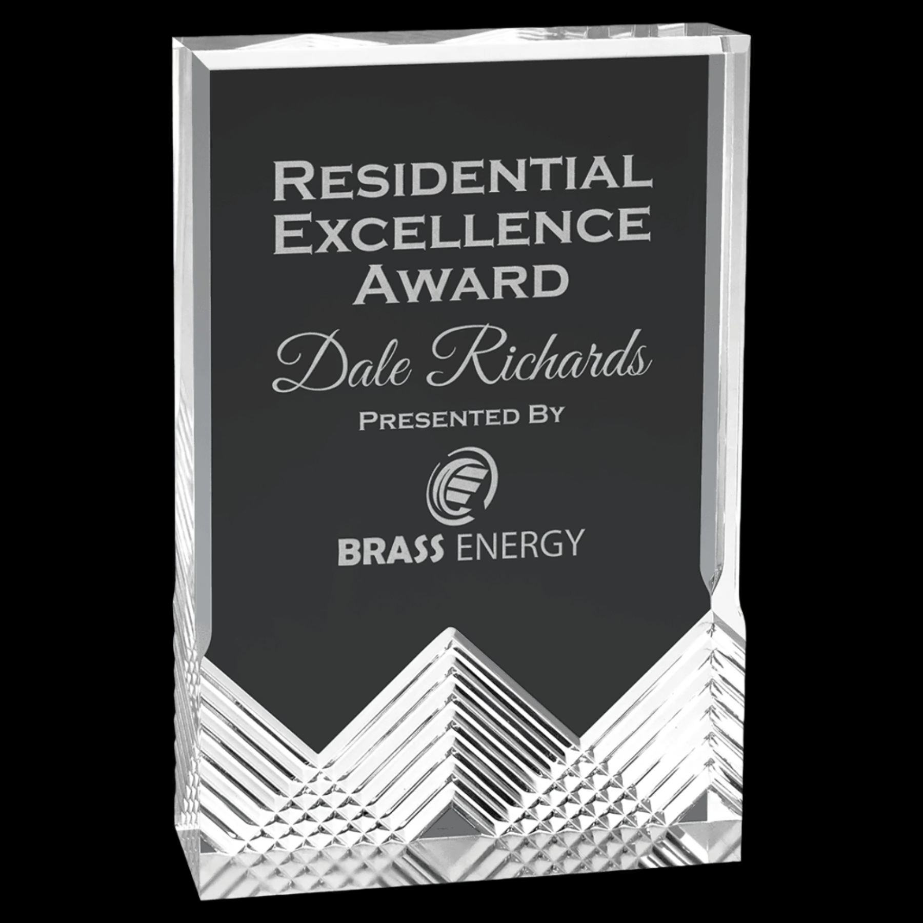 Silver Apex Mirage Acrylic panels are self-standing and feature a robust 1-inch thickness, providing a sleek and modern appearance. Designed with a clear engraving area, they allow for precise customization while maintaining a clean, professional look. Available in multiple colors, these acrylics offer versatility for various design applications requiring durability and visual clarity.