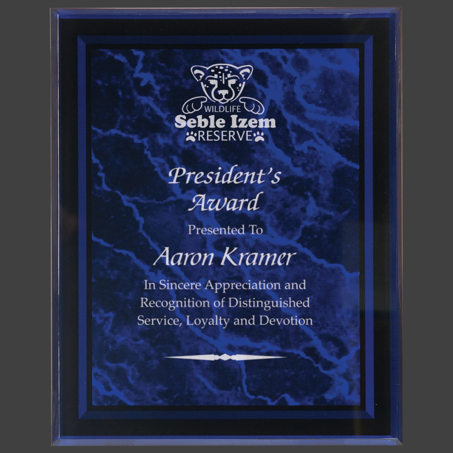 Purple Marble Border Clear-Plaq Acrylic plaques offer a sophisticated display solution with a thickness of .375 inches for durability. Each plaque includes a self-adhesive hanger for easy installation. Available in multiple colors and sizes, these elegant acrylic plaques combine style and functionality, making them ideal for professional presentations or decorative purposes.