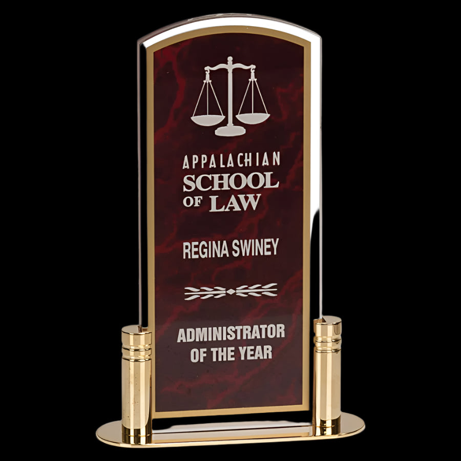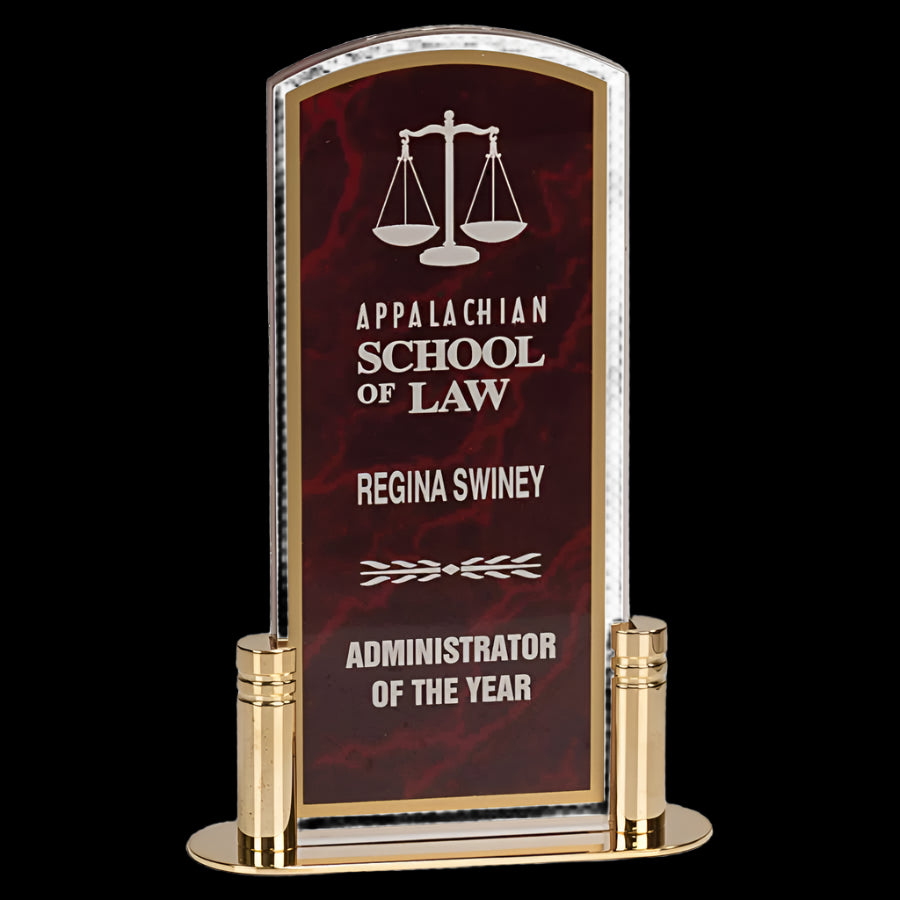The Red Marbleized Arch Pop-In Acrylic offers a sleek, professional look with its .375" thick acrylic design. Engineered for easy assembly, it simply pops into a compatible base (sold separately), making it an ideal choice for customizable awards or displays. Its marbleized finish adds a distinctive, elegant touch suitable for expert presentations and recognition.