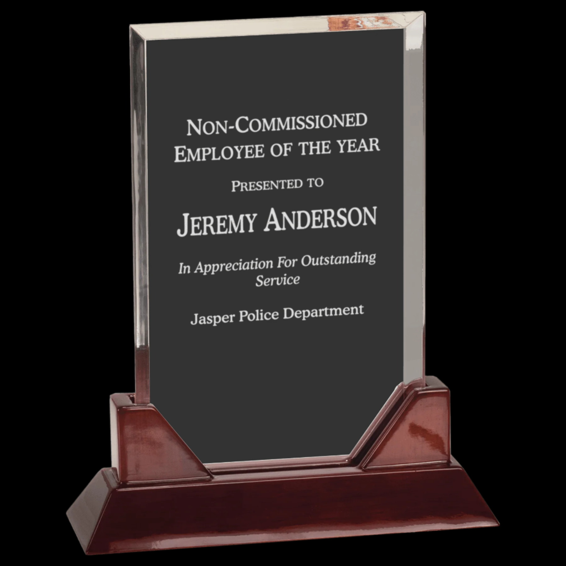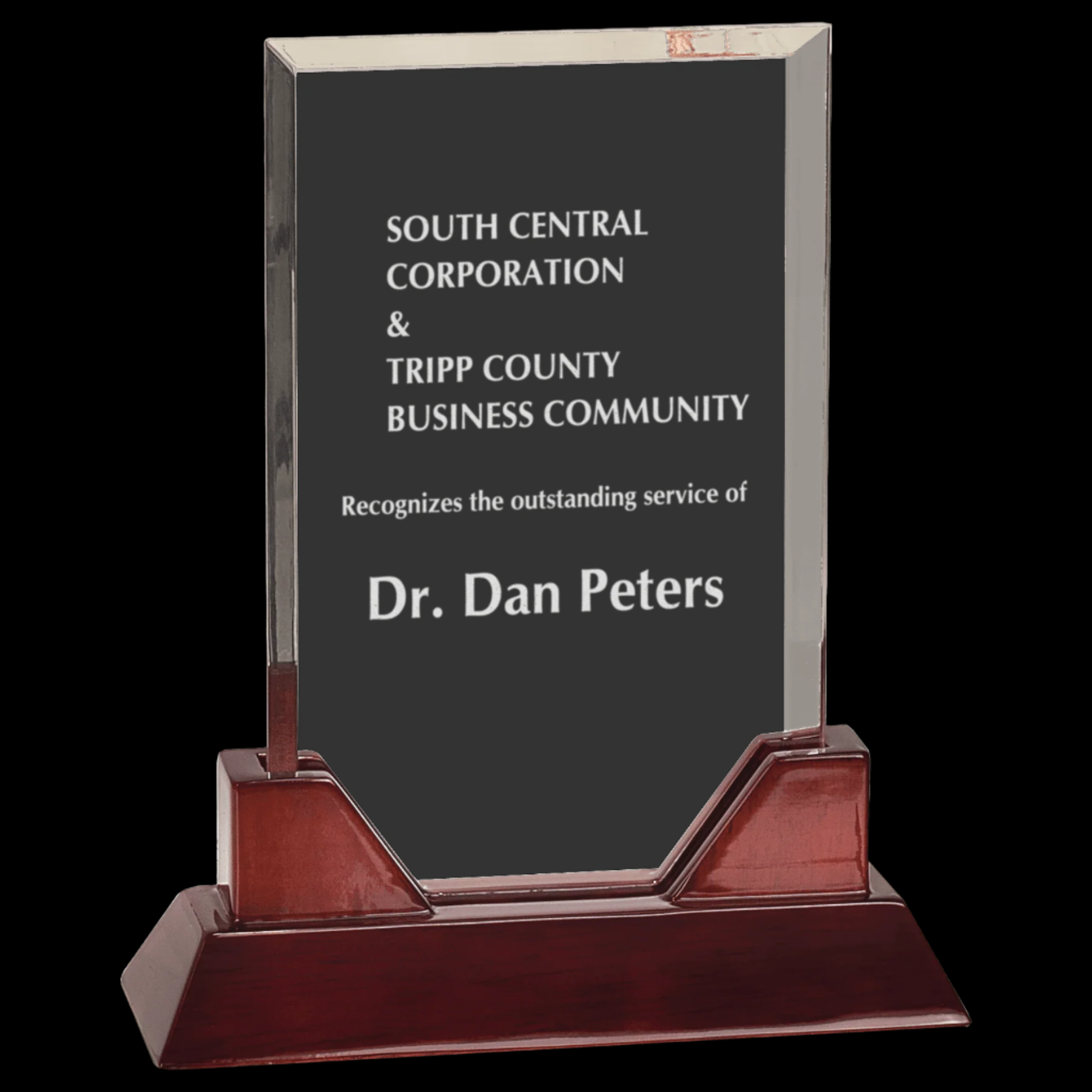Crafted with a 0.5" thick acrylic panel and a rosewood piano finish base, this Rectangle Prestige Acrylic combines durability with elegant design. Each piece is carefully packaged in a velvet-lined gift box, making it an ideal choice for distinguished awards or displays. Available in multiple shapes and sizes to suit various professional needs.