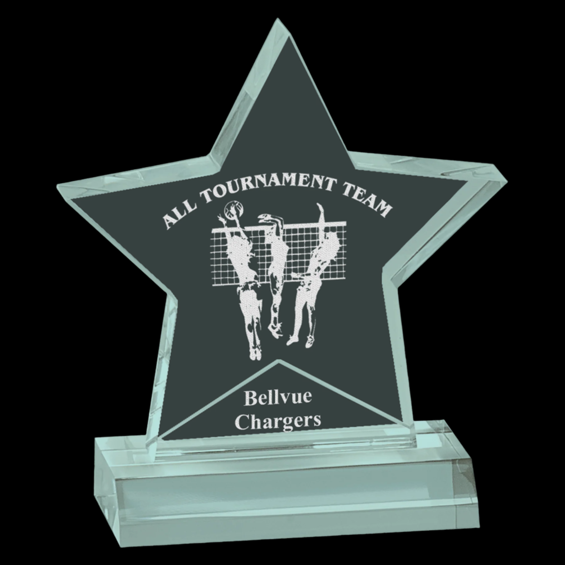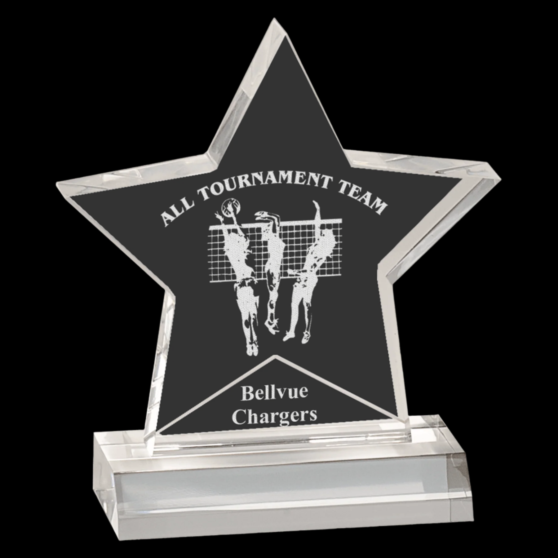 Star Acrylics are .75" Thick and Include a Base. Available in Multiple Styles, Sizes and Colors.