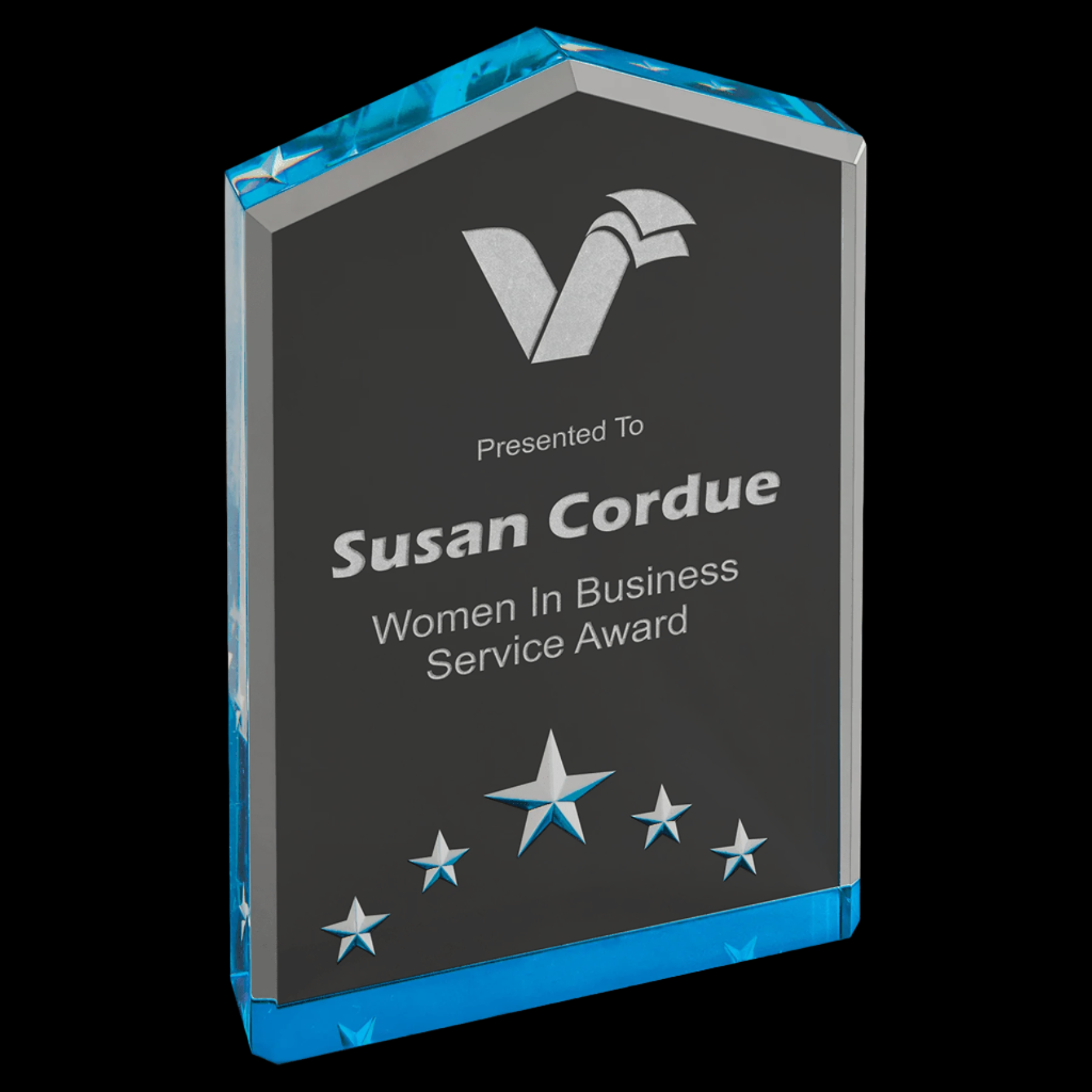 Star Point Acrylics are expertly crafted 1-inch thick awards designed to stand independently. The Blue Star Point Acrylic combines durability with a sleek, professional appearance, making it an ideal choice for recognizing outstanding achievements with lasting impact.
