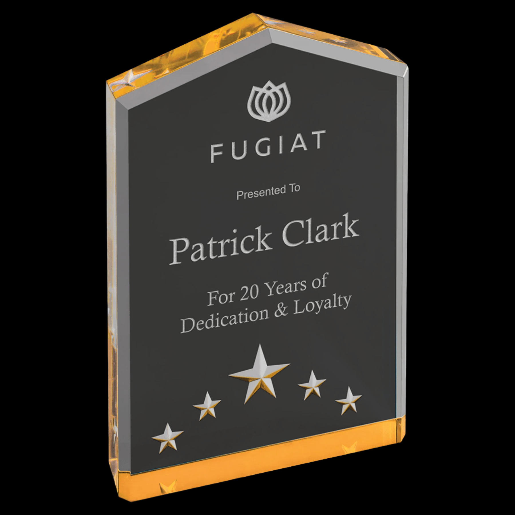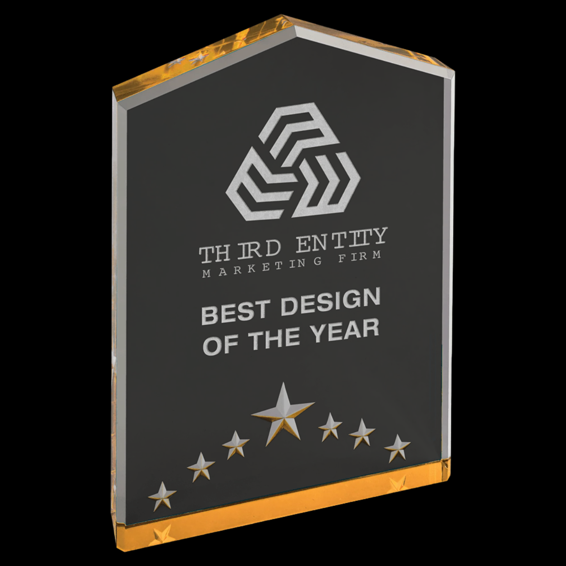 Star Point Acrylic awards feature a robust 1-inch thickness and a self-standing design, ensuring both durability and ease of display. Crafted for lasting recognition, these awards provide a professional and elegant presentation suitable for honoring outstanding achievements.