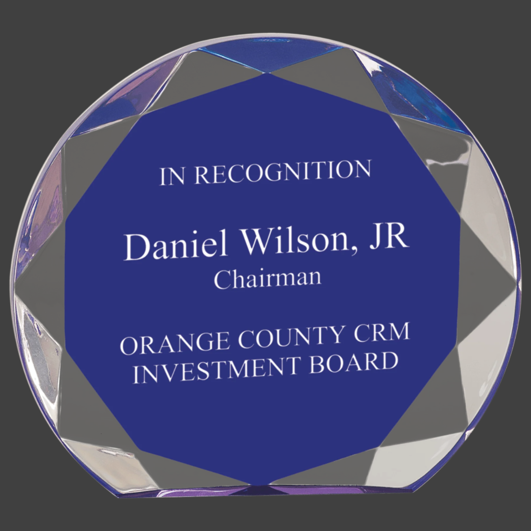 Blue Sunburst Acrylic awards feature a striking sunburst design crafted from 1-inch thick acrylic, providing a sturdy, self-standing display. Their solid construction ensures durability and a premium feel, making them ideal for recognizing achievements with a modern and elegant touch. Perfect for professional settings, these awards combine visual impact with lasting quality.