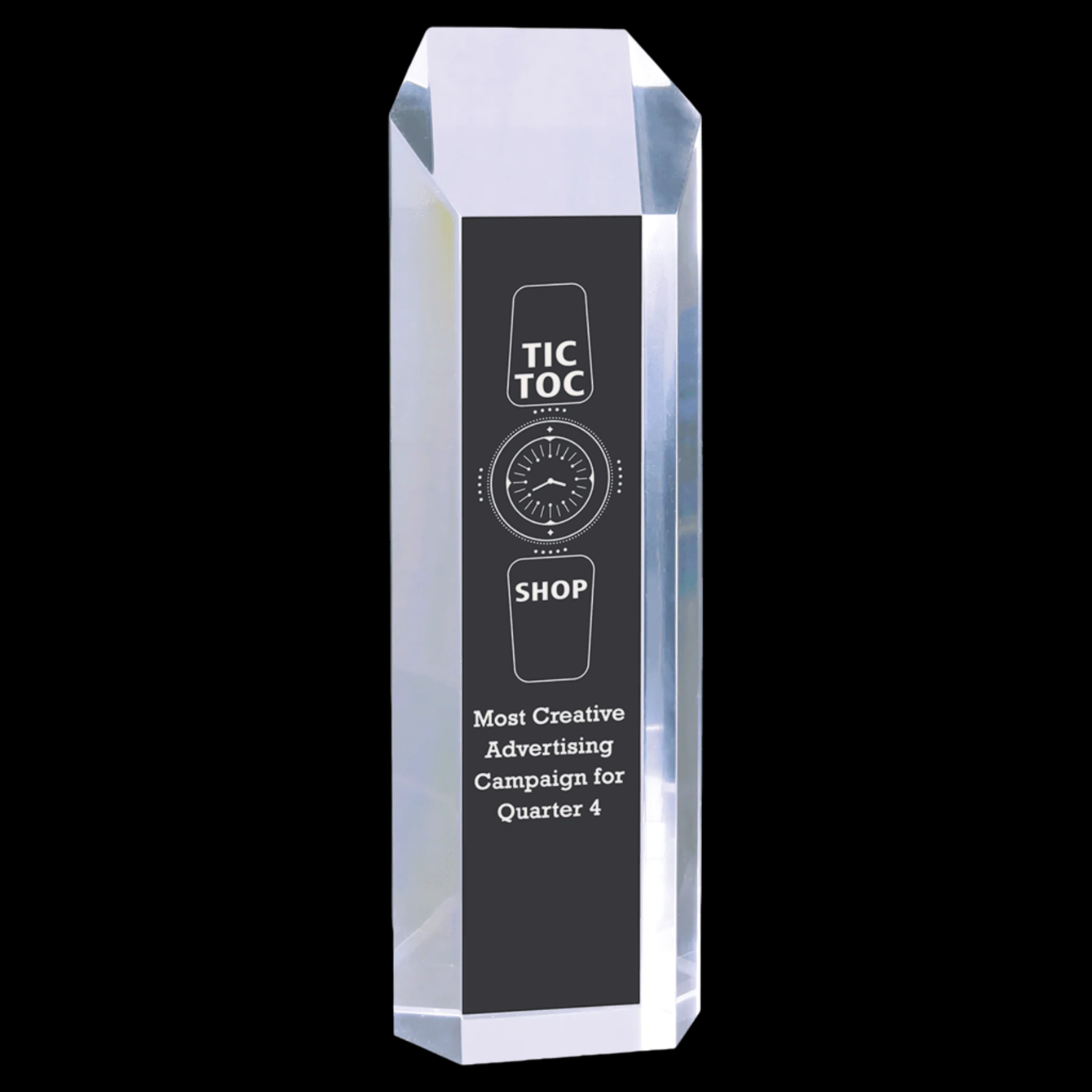 Clear Tower Acrylics stand 2 inches tall and are designed to be self-supporting, offering a sleek and sturdy display solution. Their transparent construction ensures unobtrusive visibility, making them ideal for showcasing items or organizing spaces with a professional finish.