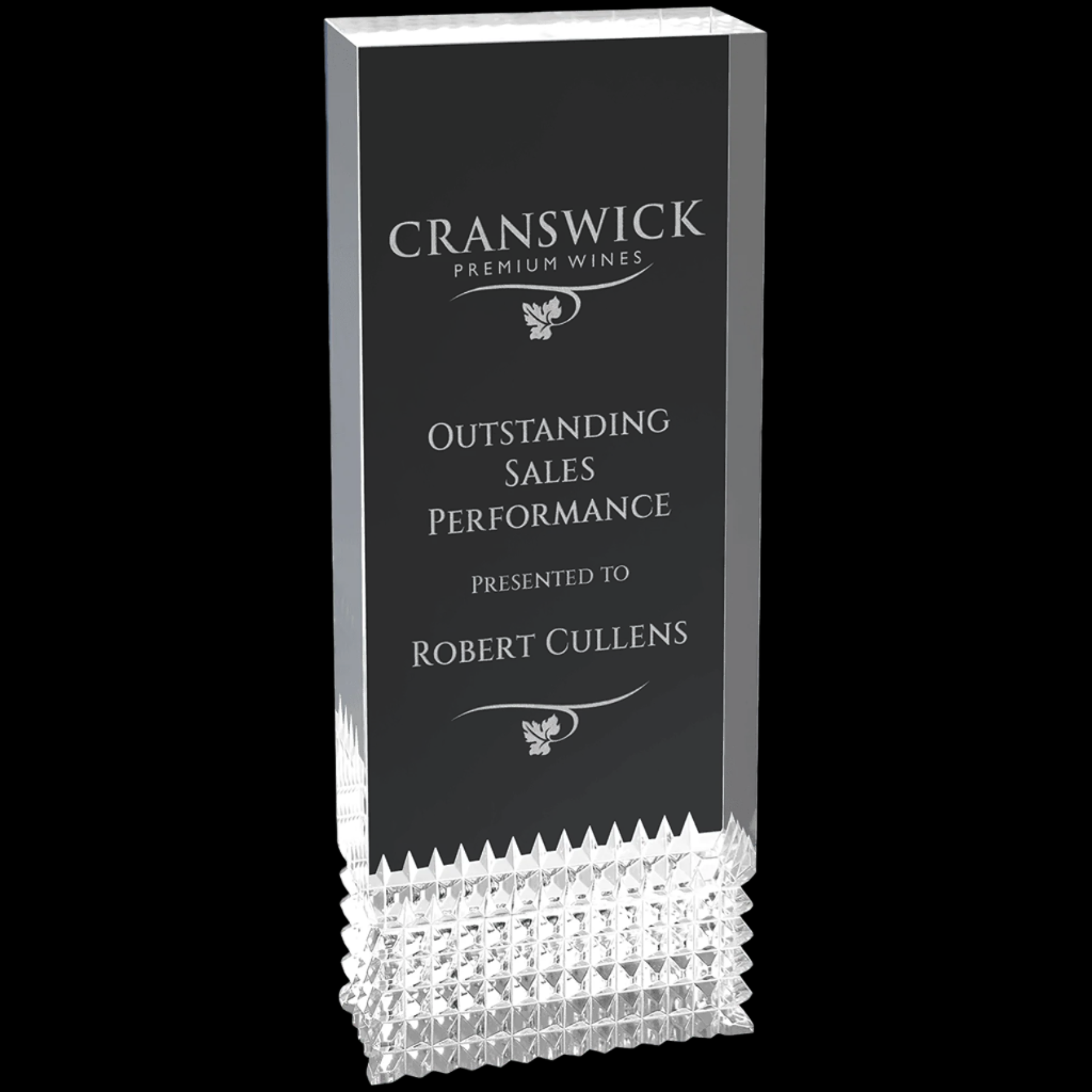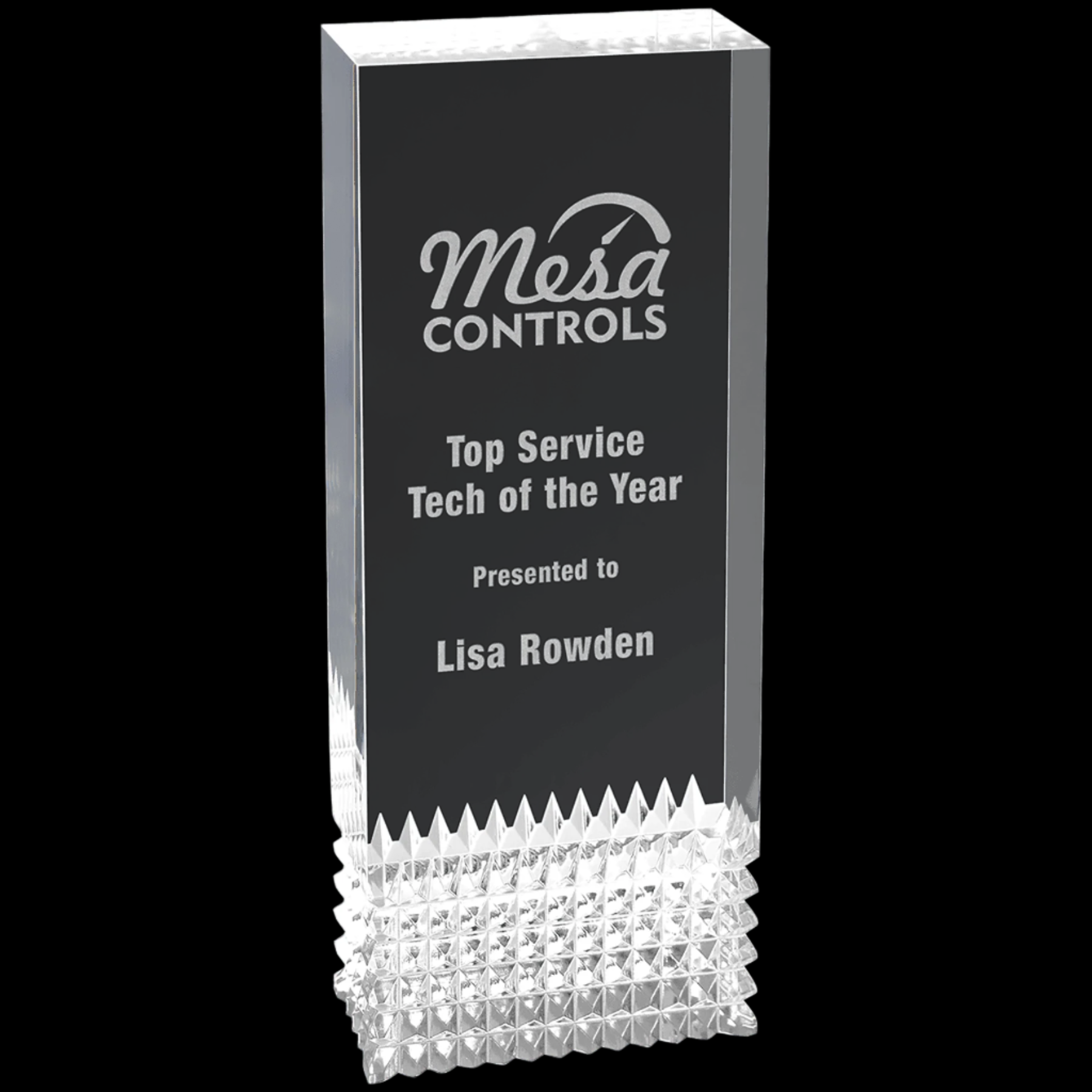 Silver Tribute Acrylic panels stand 1.25 inches tall, offering a sturdy, self-supporting design. Their ice-like appearance delivers a crisp, clean aesthetic, making them ideal for professional displays or decorative accents that require both durability and visual clarity.