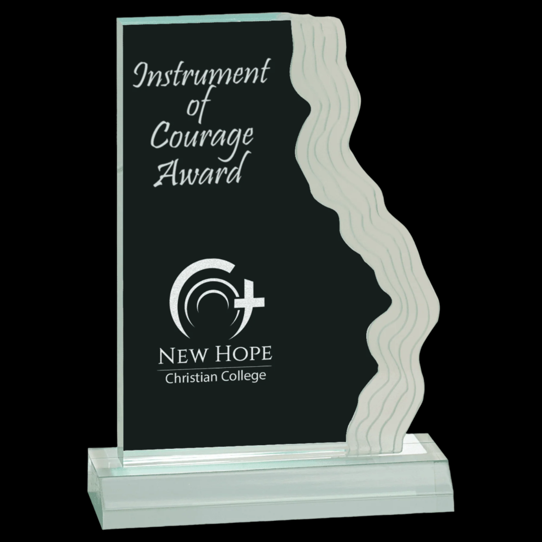 Crafted from .75" thick frosted acrylic, the Jade Frosted Waterfall Edge Acrylic features a sleek base for stable display. Available in multiple sizes and styles, this piece combines durability with a refined aesthetic, ideal for professional environments seeking both function and elegance.
