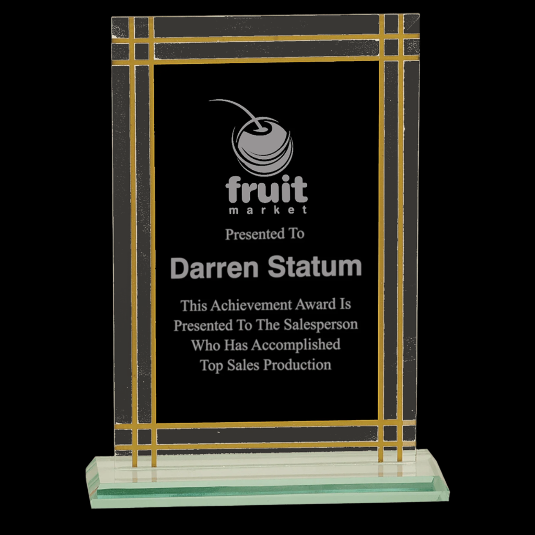 Contemporary Glass Full Border Award features a sleek design with .125" thick glass mounted on a sturdy glass base, offering a refined and modern presentation. Its durable construction ensures lasting elegance, making it an ideal choice for recognizing achievements with a sophisticated touch.
