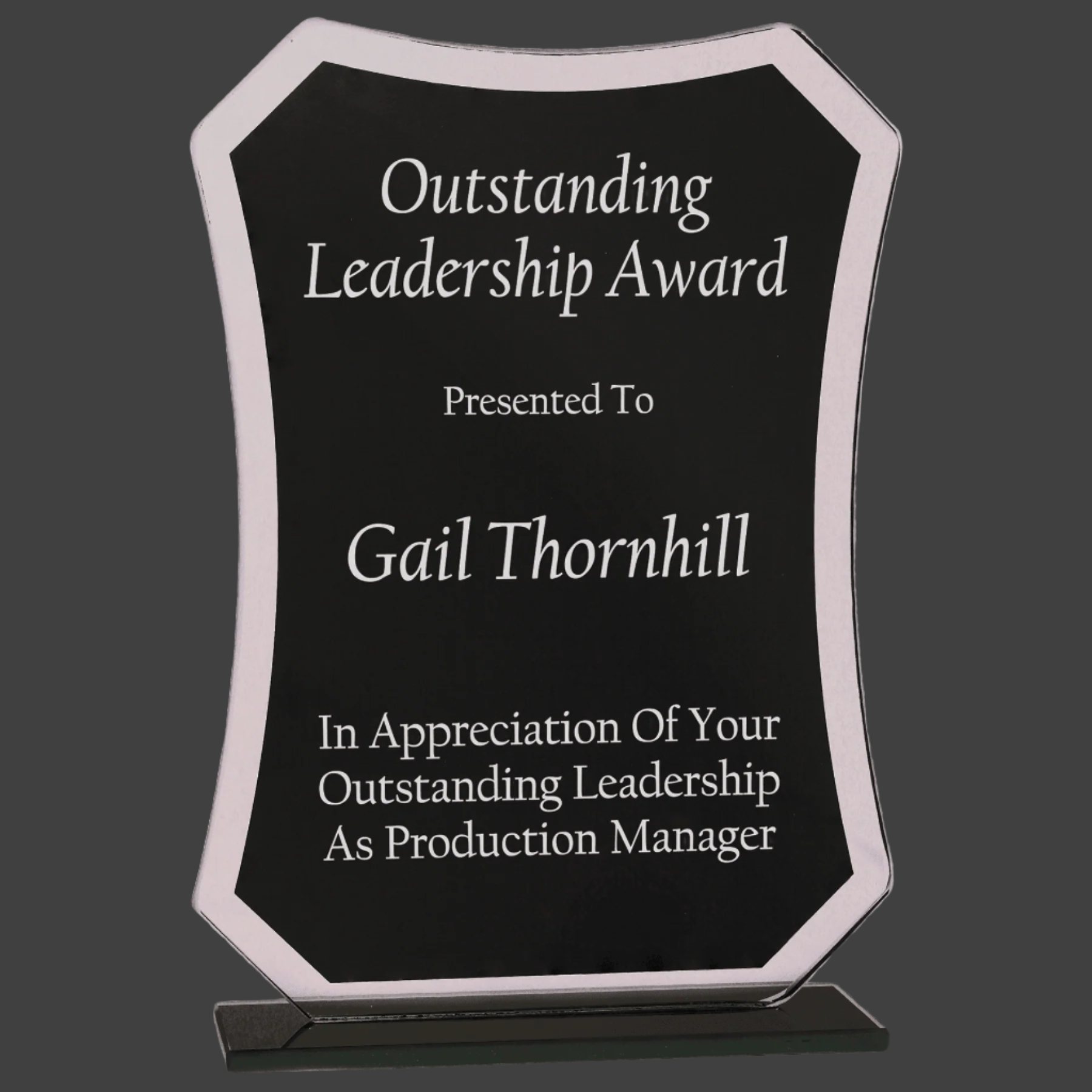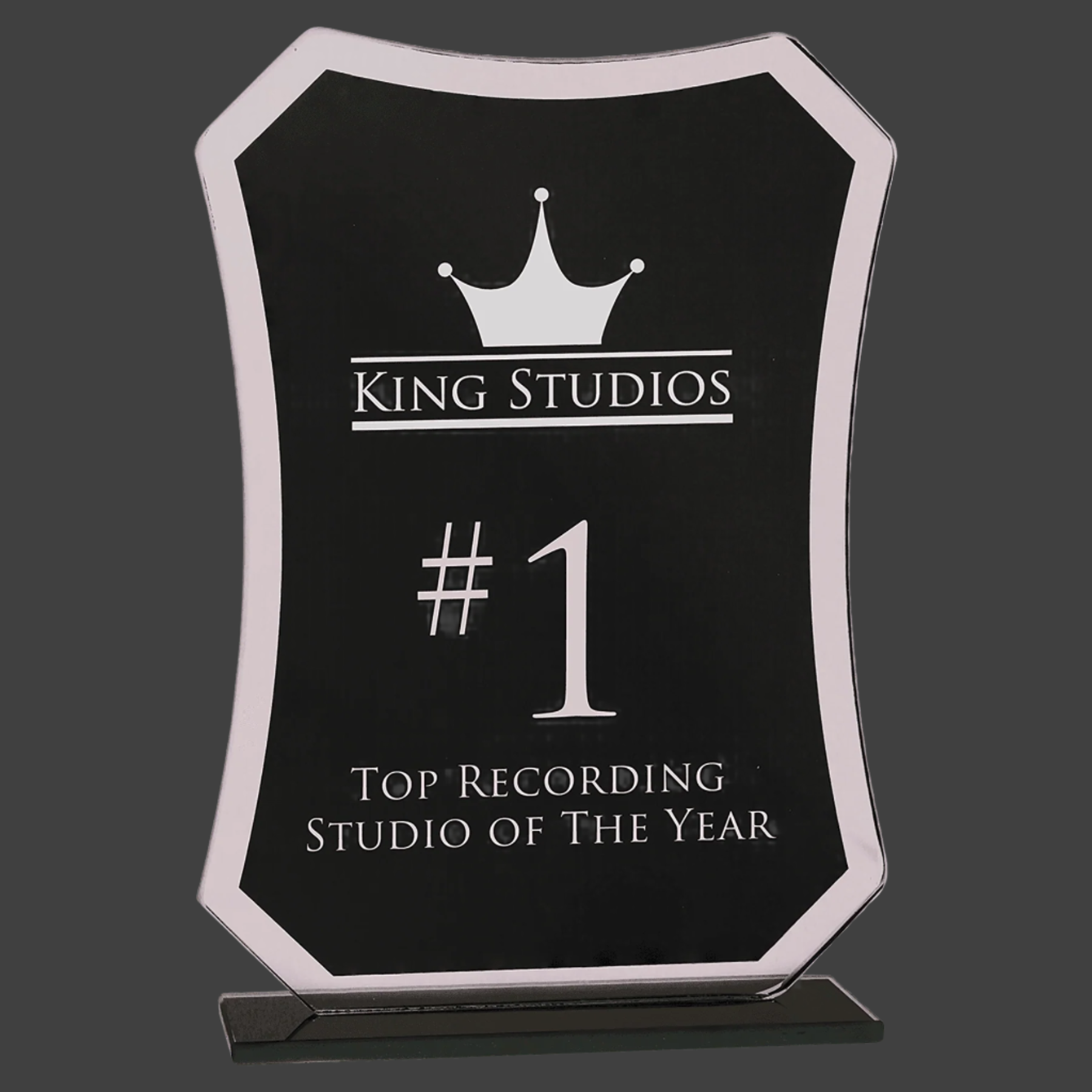 Reflection Glass Is.125" Glass with Screened Black Back and Mounted on a Glass Base.