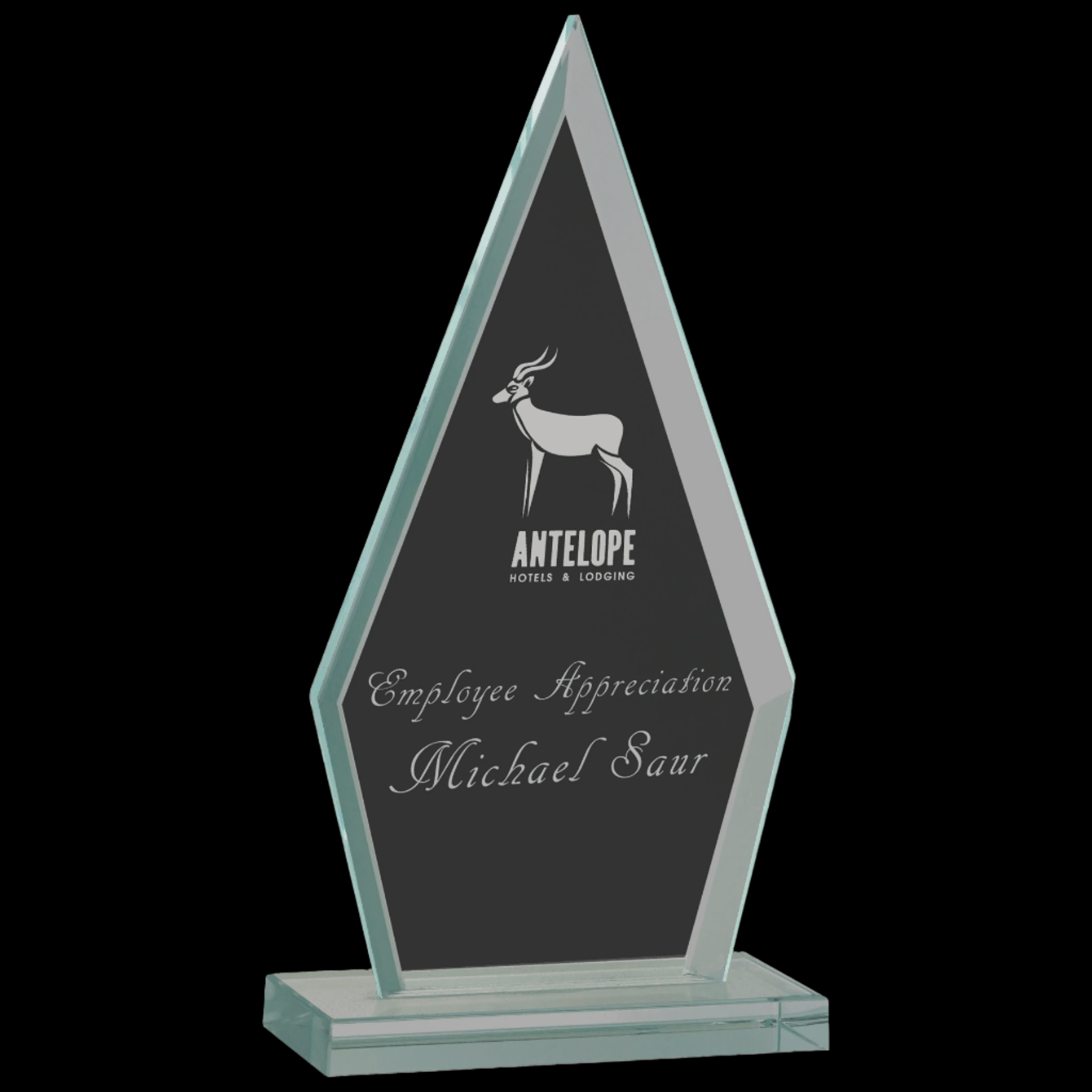 The Triangle Jade Glass Award combines elegant design with a distinctive jade-tinted glass, creating a sophisticated recognition piece. Its sharp triangular shape symbolizes strength and achievement, making it an ideal professional award to honor excellence and inspire continued success. Crafted with precision, this award offers a timeless aesthetic suitable for any corporate or formal event.