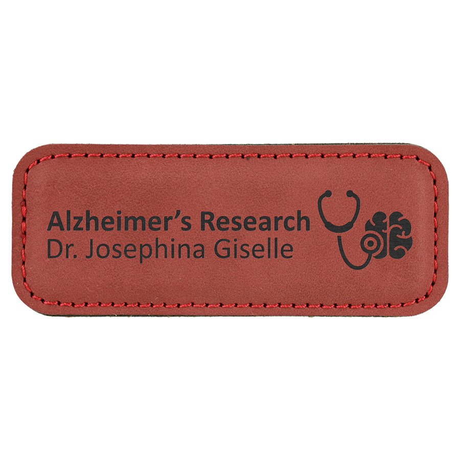 This  Leatherette Badge with Magnet offers a sophisticated and durable solution for professional identification. Featuring a high-quality leatherette surface with an elegant gold tone, it ensures a polished look. The integrated magnet securely fastens the badge without piercing fabric, preserving clothing integrity while providing ease of use. Perfect for corporate events, retail staff, or conferences, this badge combines style with practical functionality for a seamless professional appearance.