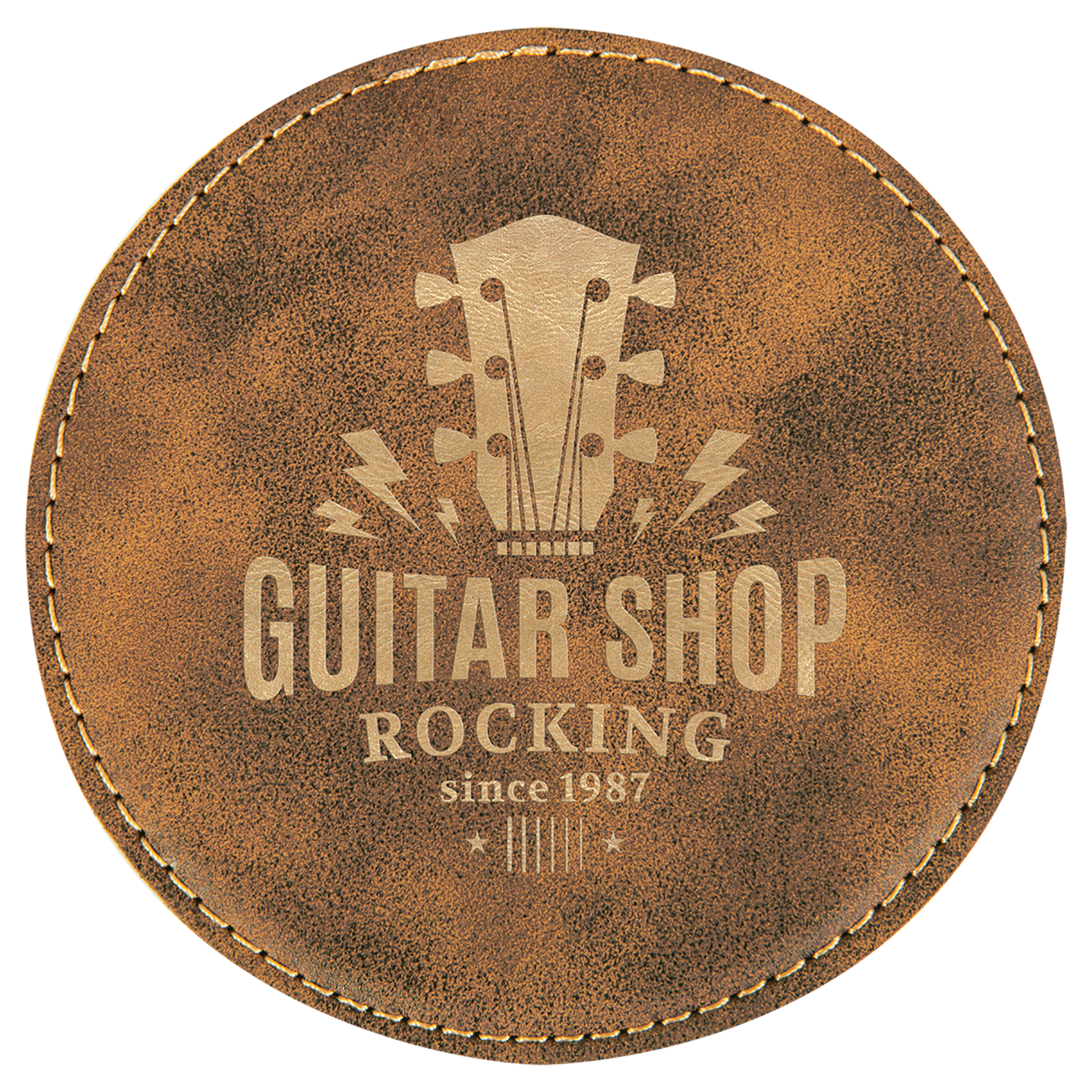 4" Round Rustic/Gold Leatherette Coaster