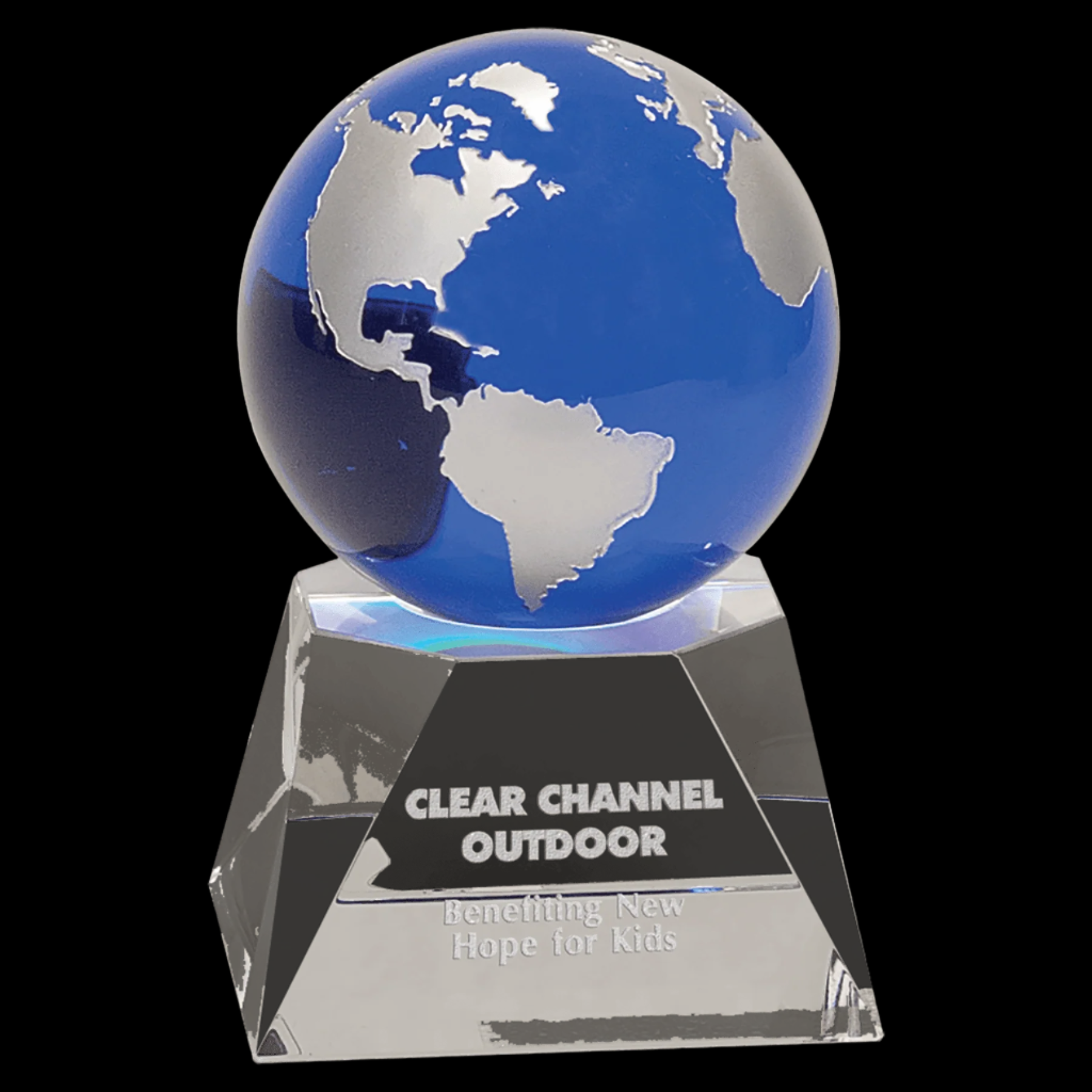 Blue Crystal Globe On Clear Crystal Base