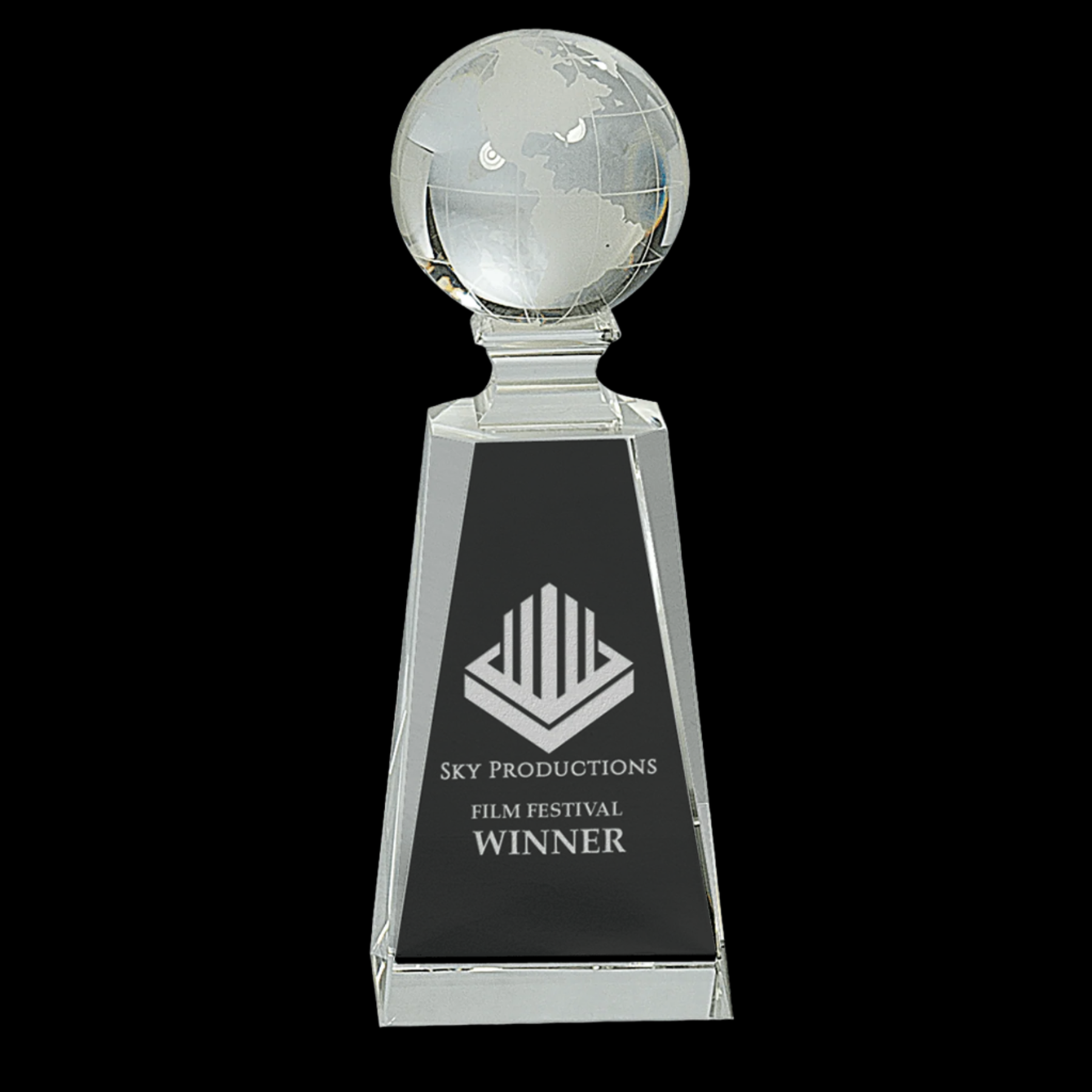 Our Crystal Globe on Clear Tower is meticulously handmade, ensuring each piece is unique with slight size variations. The globe is elegantly mounted on a clear crystal tower, creating a sophisticated display. Presented in a lined gift box, it makes an exceptional gift or a refined addition to any collection.