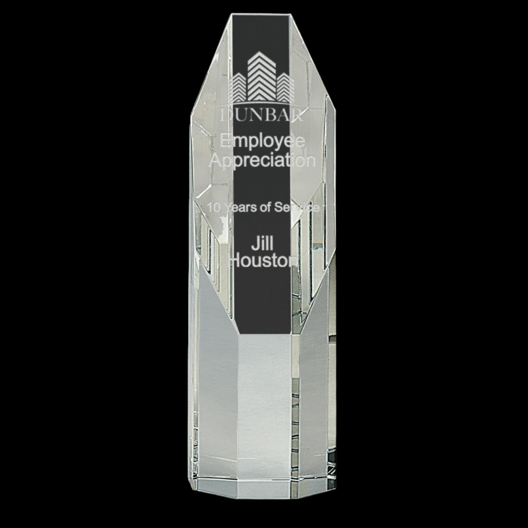 Our Clear Octagon Slant-Top Crystal Tower is expertly handcrafted, ensuring each piece is unique with slight size variations. Its optic crystal clarity and distinctive slant-top design create a striking presence, perfect for showcasing achievements. Delivered in a lined gift box, it offers an elegant presentation ready for any special occasion.