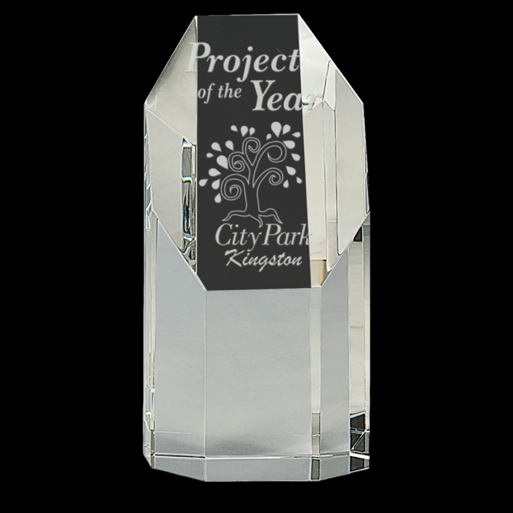 Our Clear Crystal Octagon Tower is expertly handcrafted, ensuring each piece is unique with slight size variations. Its optic crystal clarity and bold octagonal design create a striking presence, perfect for prestigious awards or recognition. Delivered in a lined gift box, it offers an elegant presentation ready for gifting or display.