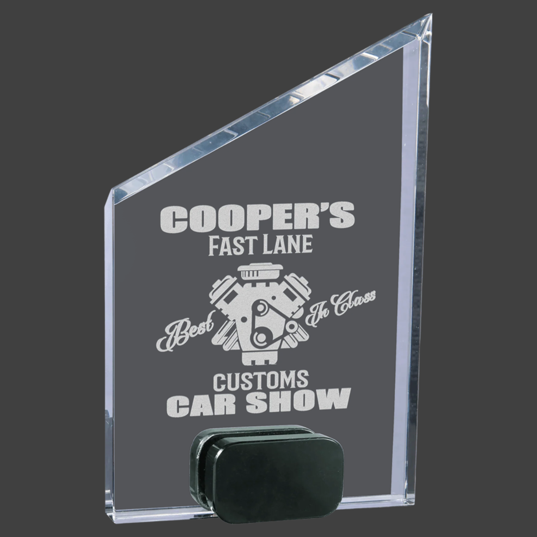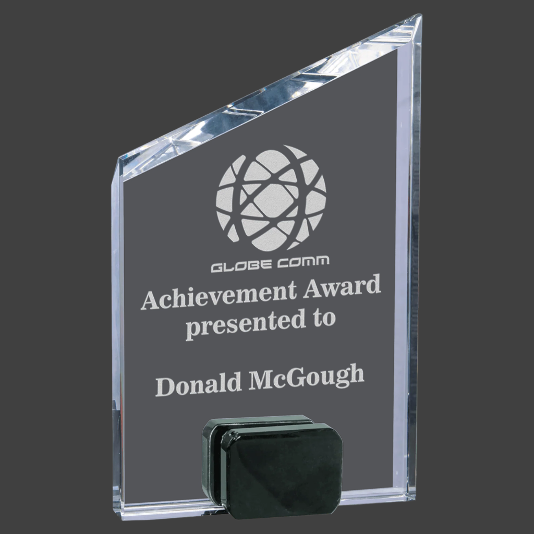 Elevate your recognition with the Crystal Peak award, expertly beveled and mounted on a sleek black crystal base. This design combines clarity and contrast to highlight achievements with timeless elegance, making it an ideal choice for distinguished honors and corporate accolades.