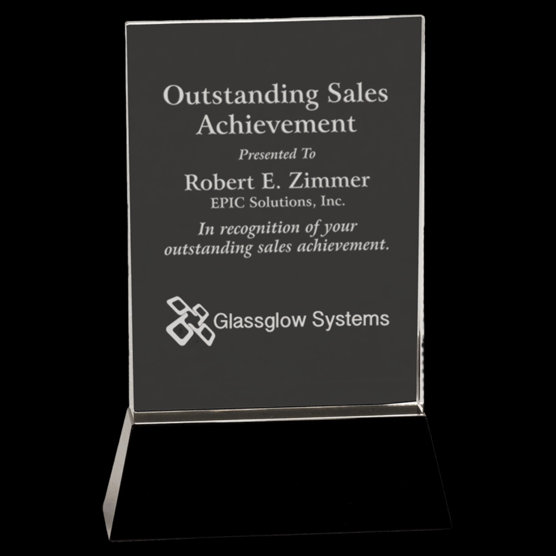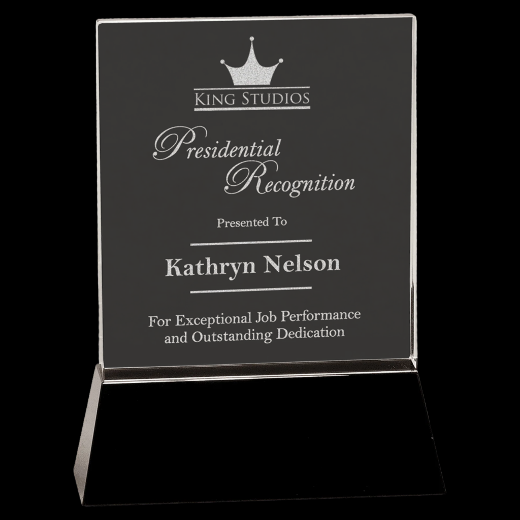 Our Clear Crystal Rectangle Wedge on Black Base is expertly handcrafted, ensuring each piece is unique with slight size variations. The clear optic crystal wedge elegantly rests on a sleek black base, offering a sophisticated presentation. Personalize your award with a double-sided engraving option to create a truly one-of-a-kind recognition piece. Each award is carefully packaged in a lined gift box, ready for presentation.