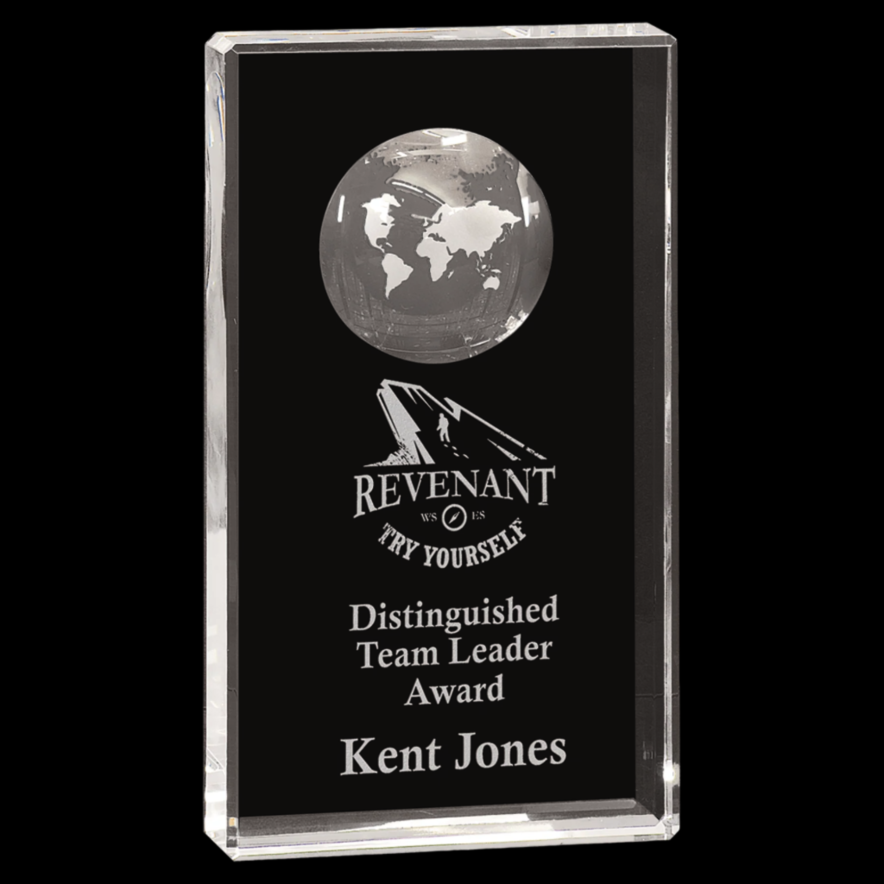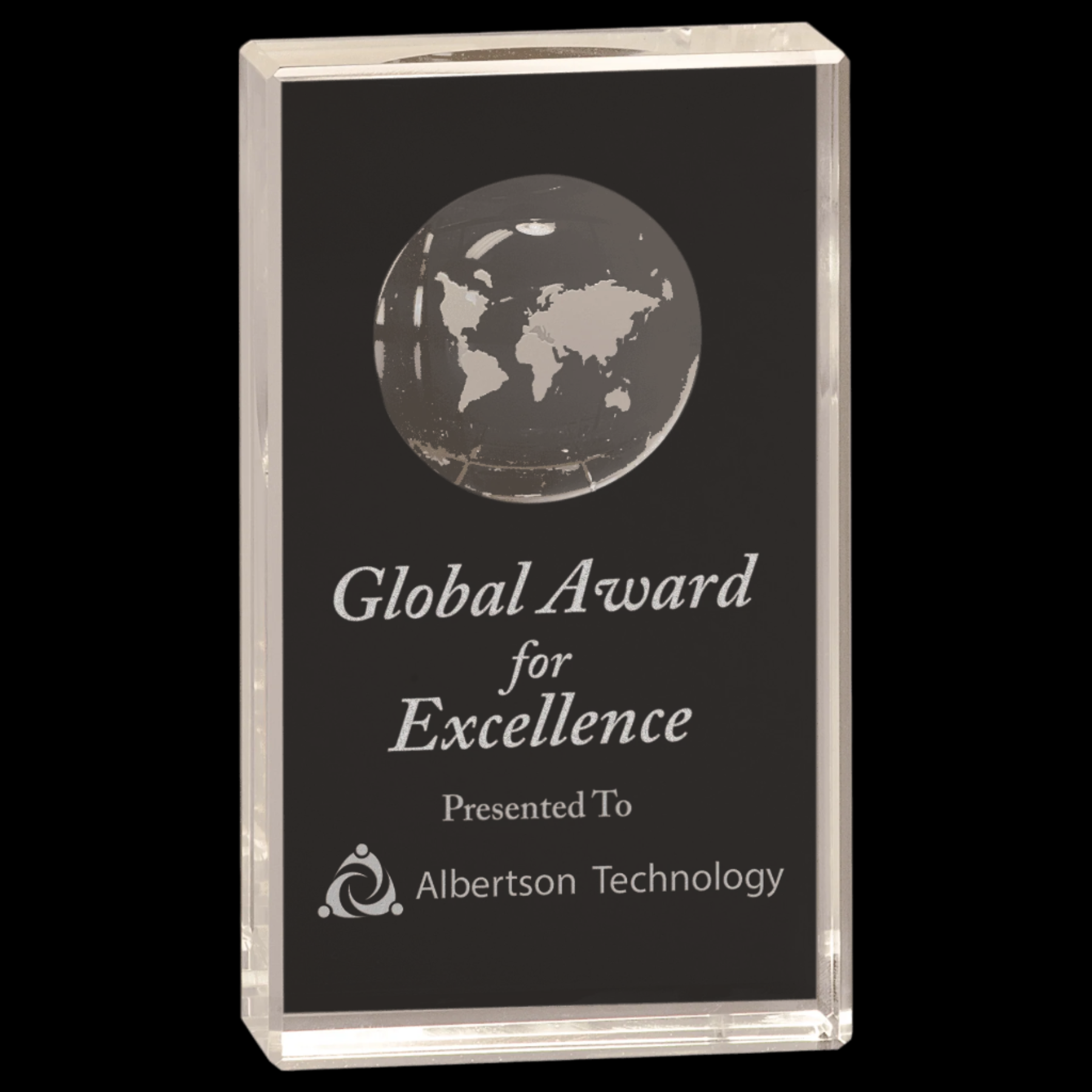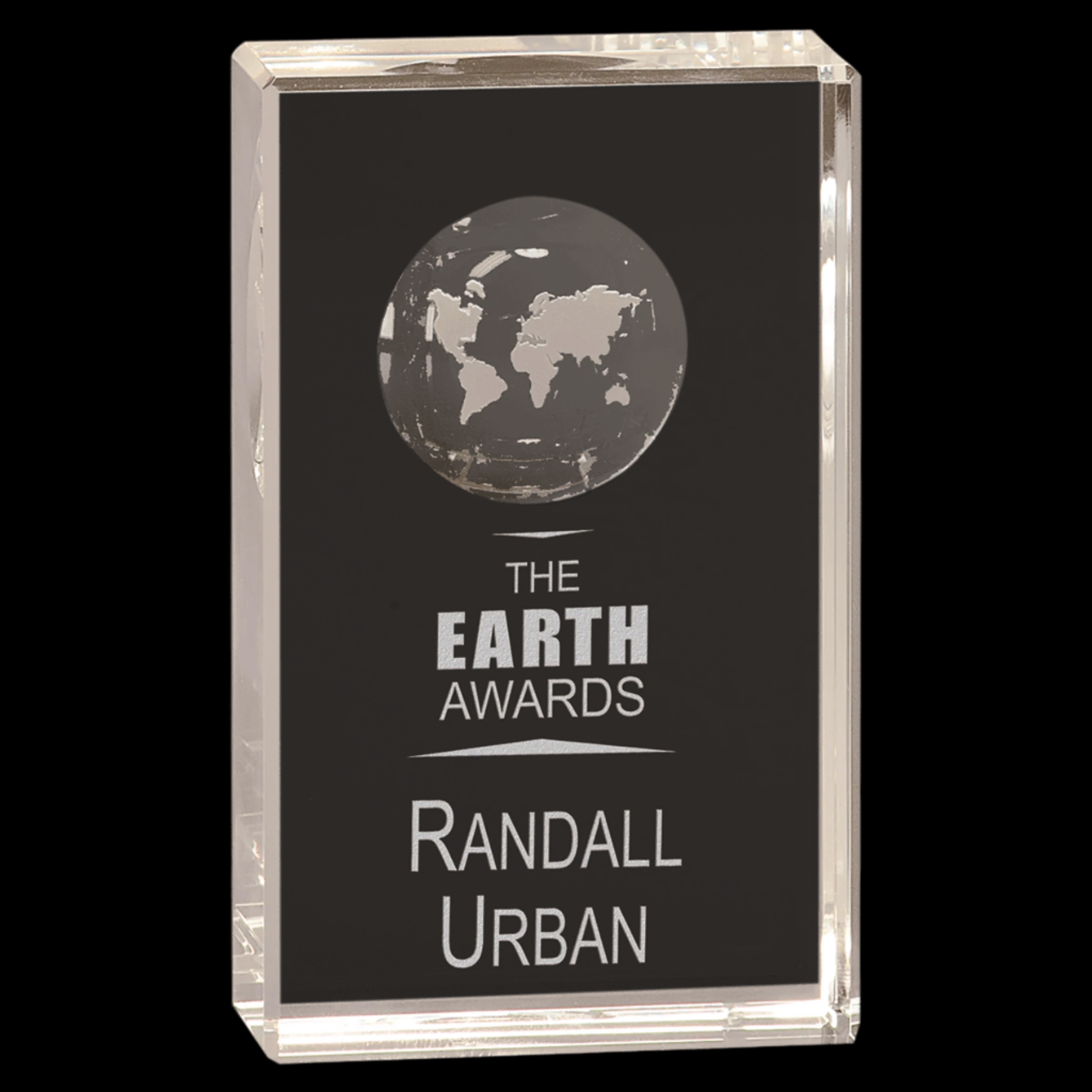 Clear Crystal Rectangle with Globe Etching