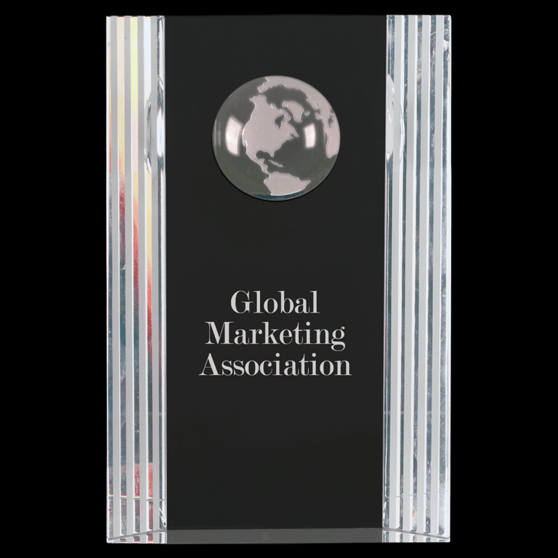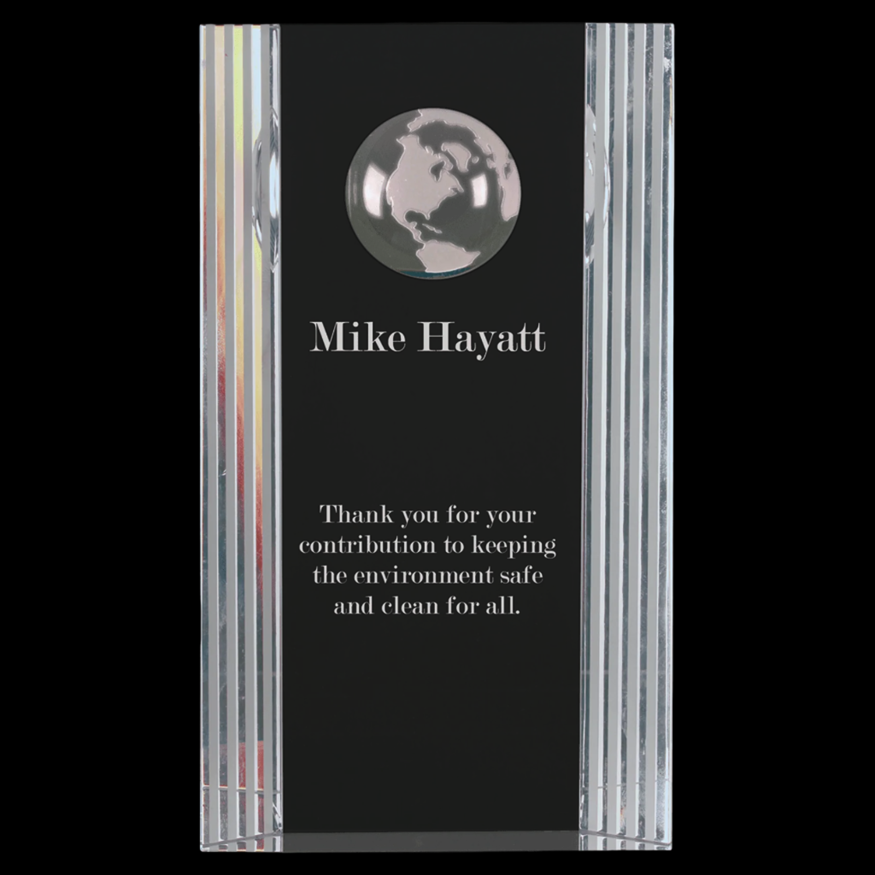 Clear Crystal Rectangle with Globe Etching and Decorative Lines