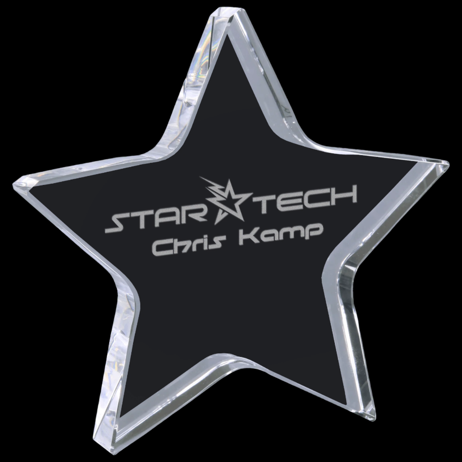 Our Star Crystal is Handmade and May Vary Slightly in Size. This Optic Crystal Star Has Two Points That are Flat, So It Stands By Itself. Award is Double-Sided For Unique Personalization. Packaged in a Lined Gift Box.