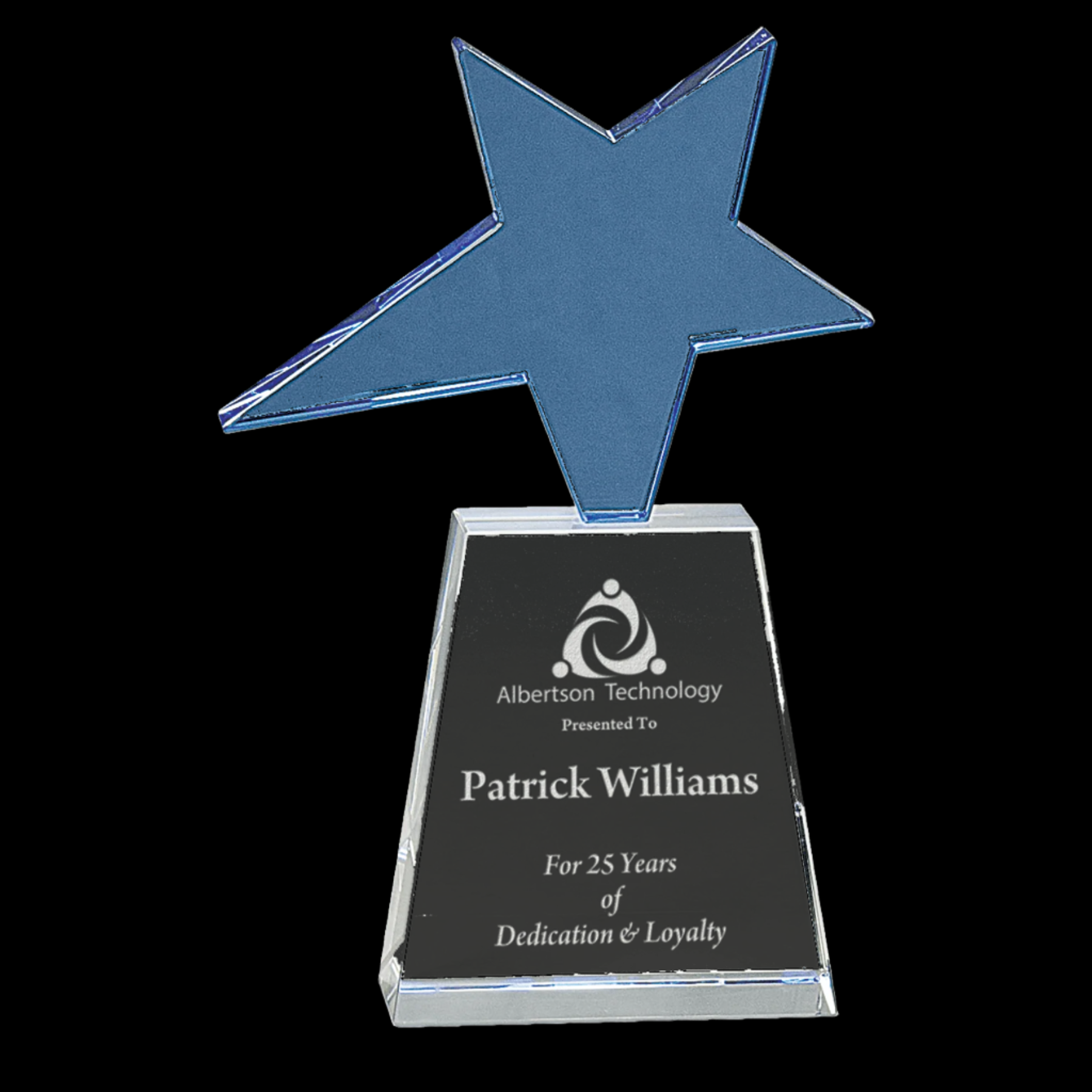 Our Star Crystal is Handmade and May Vary Slightly in Size. Blue Optic Crystal Star Attached to Clear Crystal Base. Packaged in a Lined Gift Box.