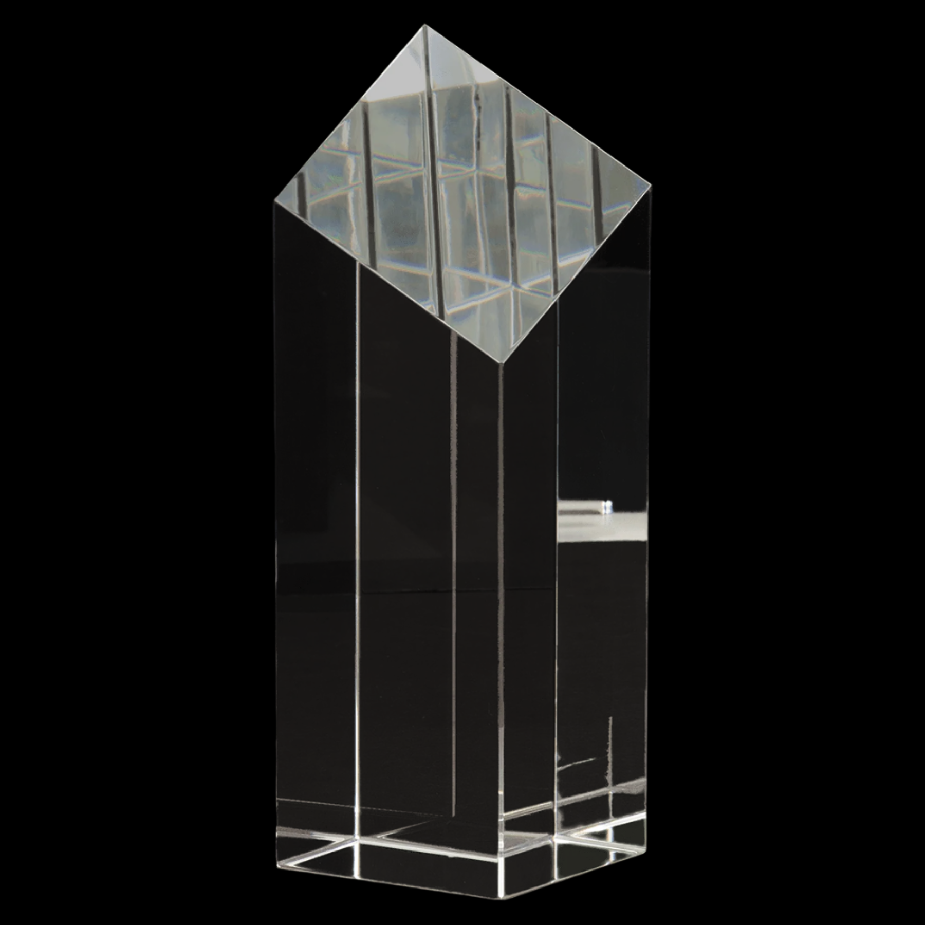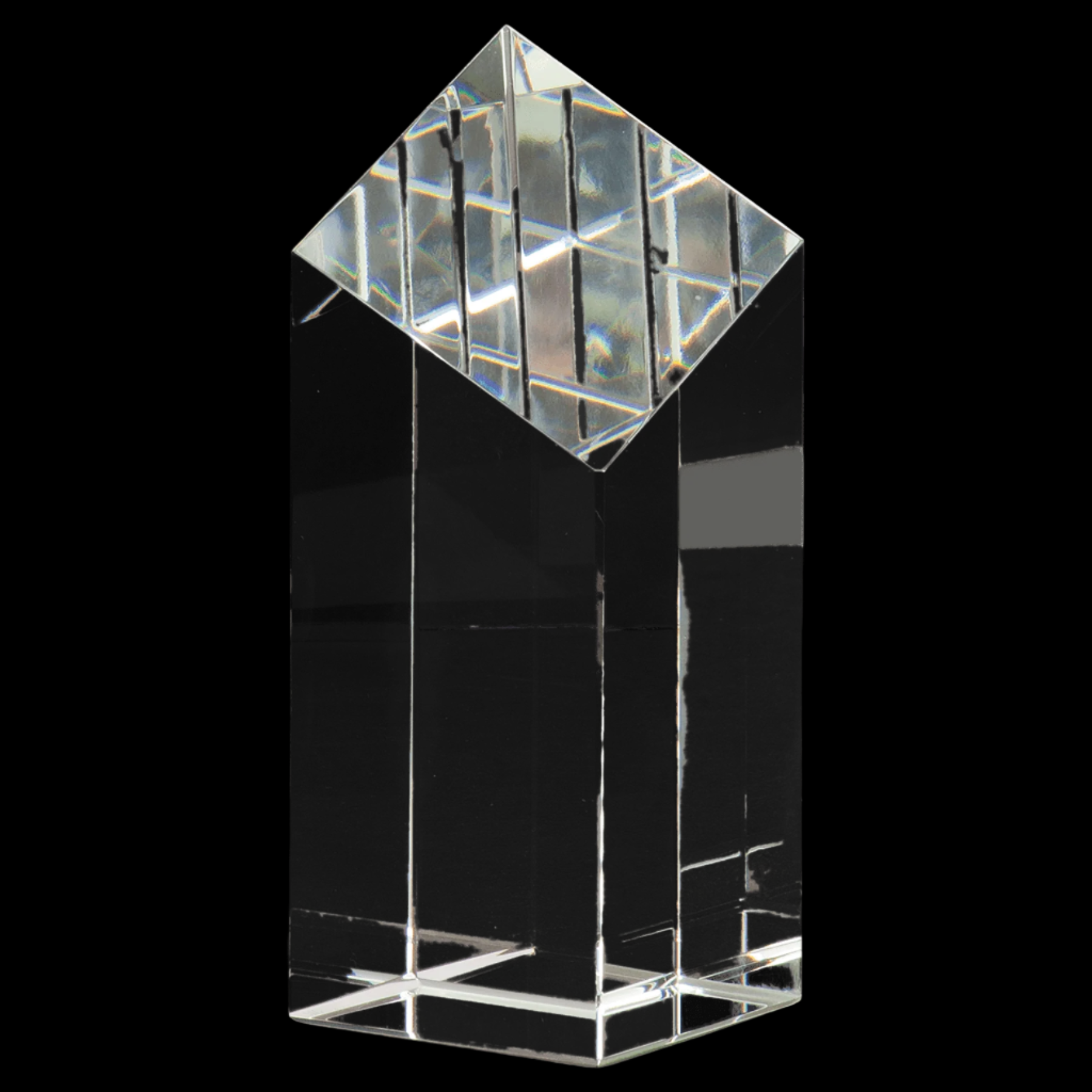 Our Crystal Diamond Top Pillar awards are meticulously handmade, ensuring each piece is unique with slight size variations. Featuring a striking optic crystal clear diamond-shaped top, this award commands attention on its own. Each award is carefully packaged in a lined gift box, making it an elegant and ready-to-present recognition piece.