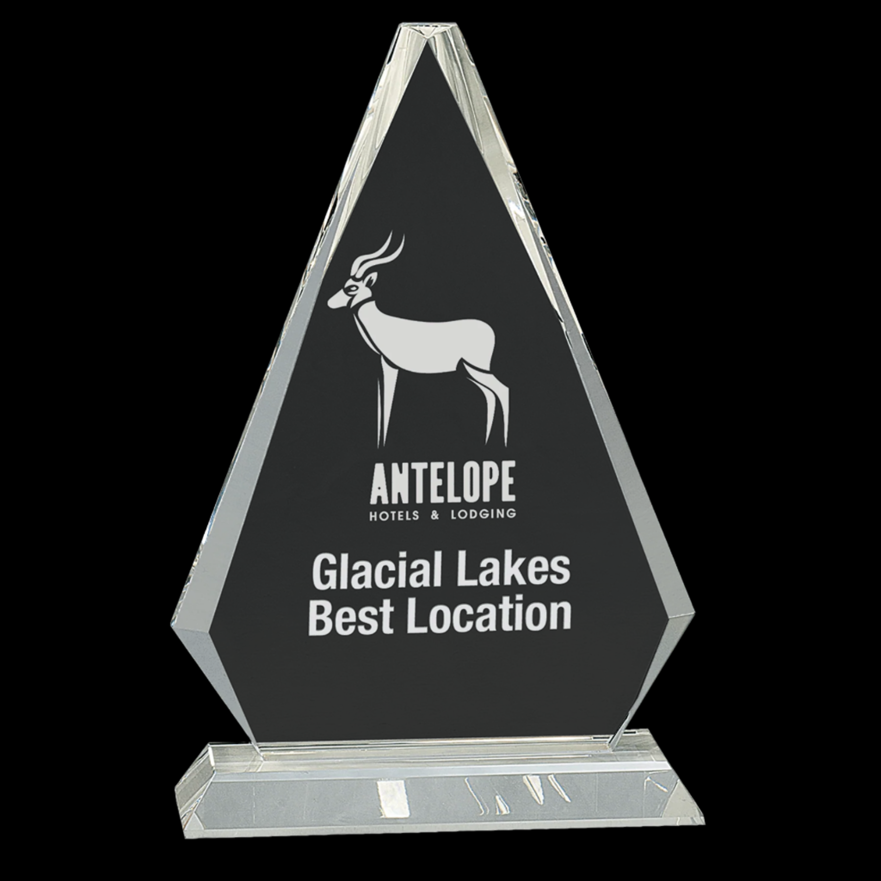 Our Crystal Awards are Handmade and May Vary Slightly in Size. Clear Triangle Optic Crystal Mounted on Clear Pedestal Base. Packaged in a Lined Gift Box.