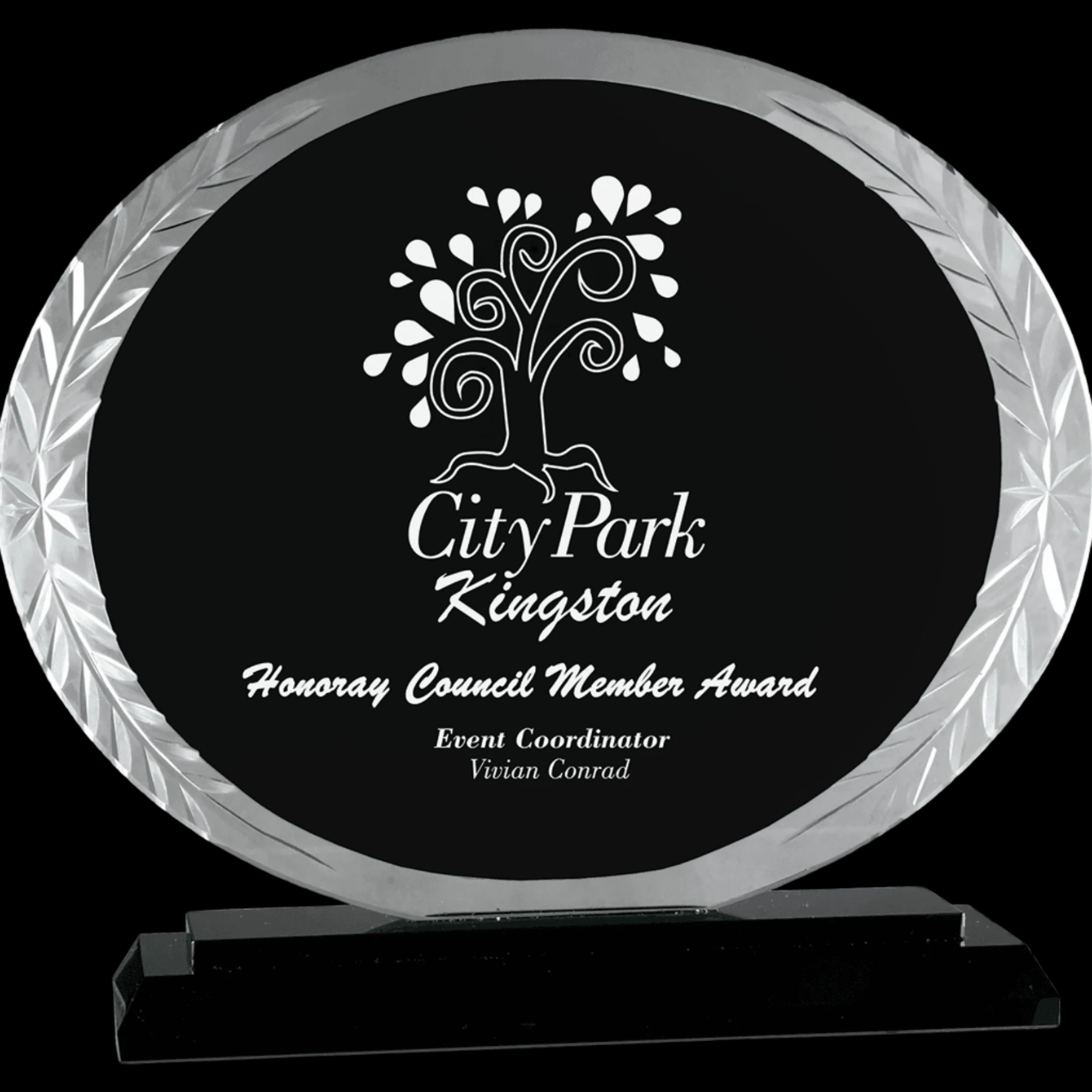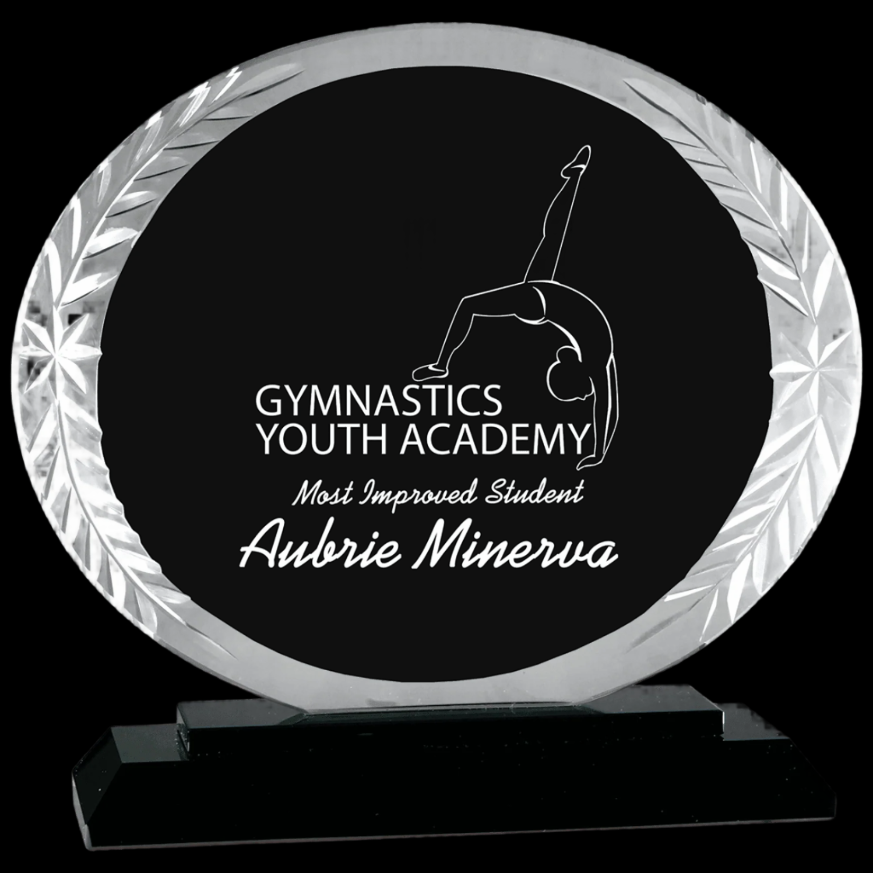 Oval Accent Glass on Black Base features a sleek oval-shaped glass piece mounted on a sturdy black glass base. Crafted with .375" thick glass, this accent piece is available in multiple sizes and colors, allowing for versatile design applications. Its refined construction and elegant form make it ideal for enhancing interior spaces with a modern, sophisticated touch.