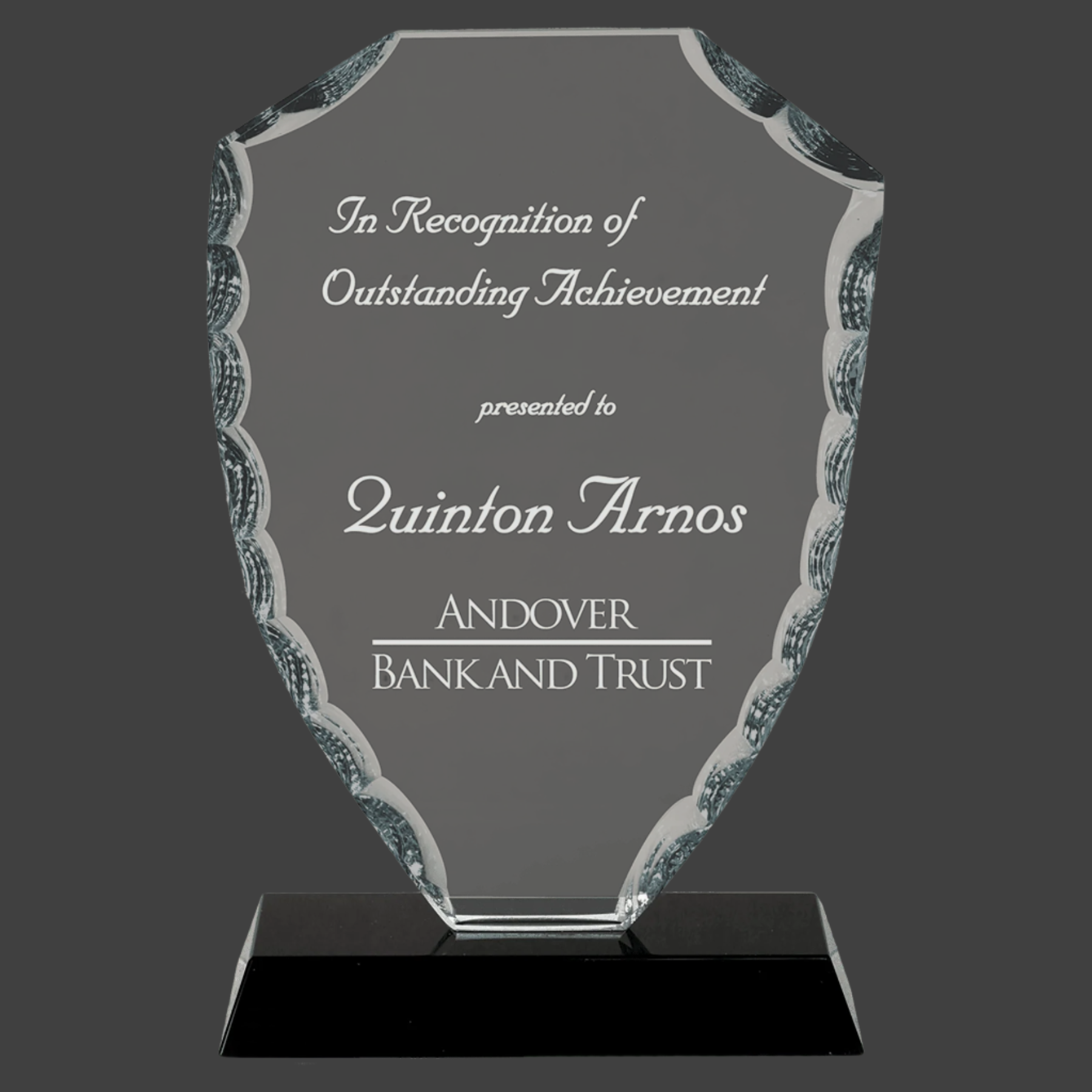 Face Glass features a robust .375" thickness and is securely mounted on a sleek black glass base. Offered in multiple sizes and styles, this product combines durability with versatile design options, making it ideal for professional applications requiring both strength and aesthetic appeal.
