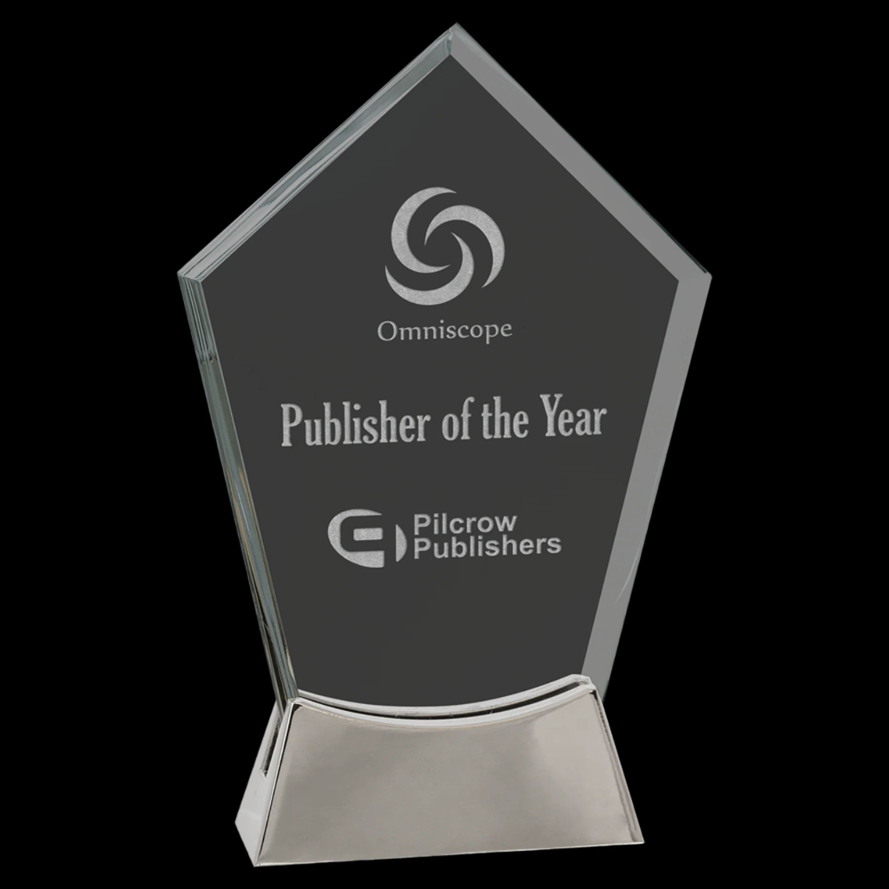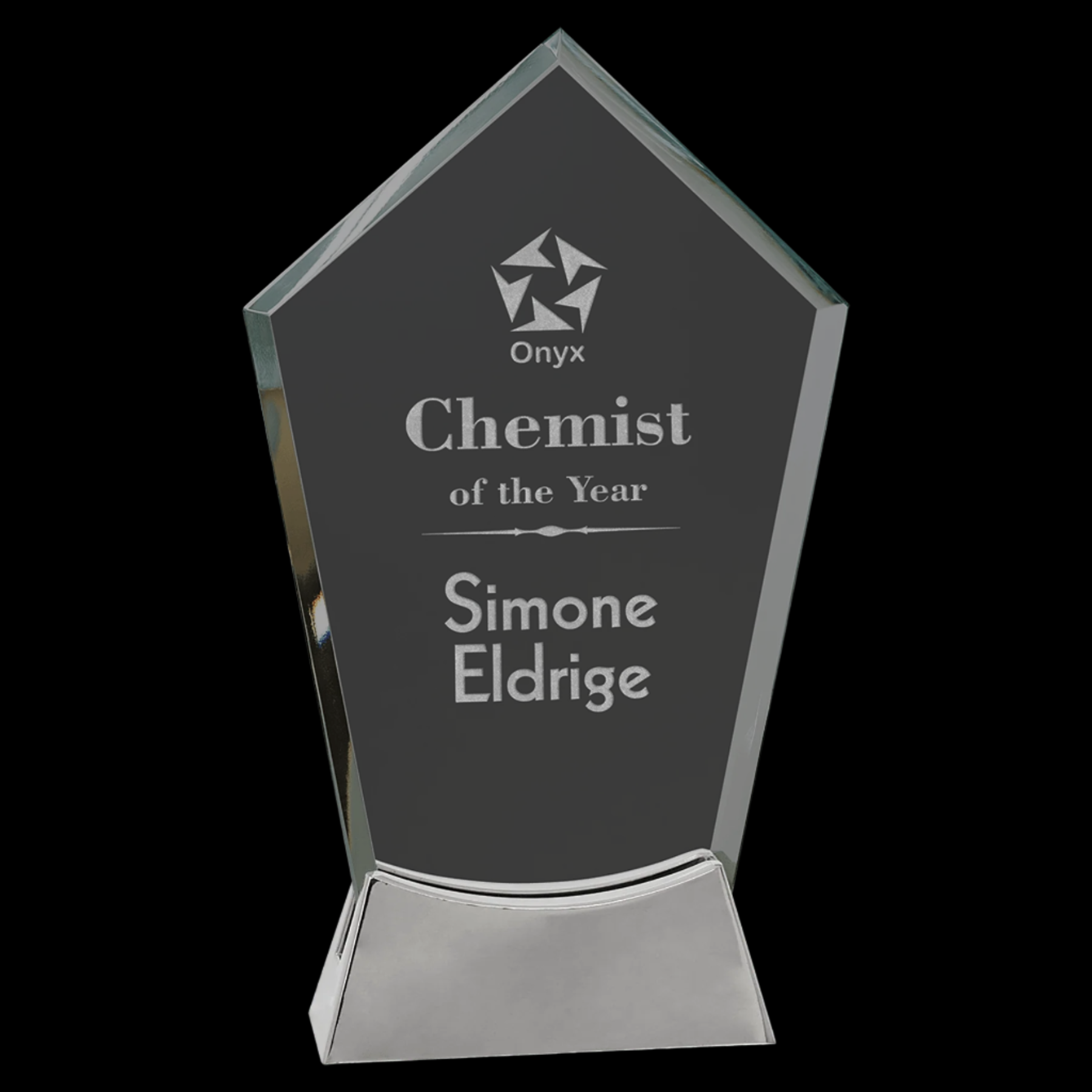 The Peak Platinum Glass is Framed By a Beveled Edge and Fits Snugly Into the Elegant Metal Base. Available in Several Sizes and Styles, Platinum Glass Awards are a Classy and Modern Way to Recognize Achievement.