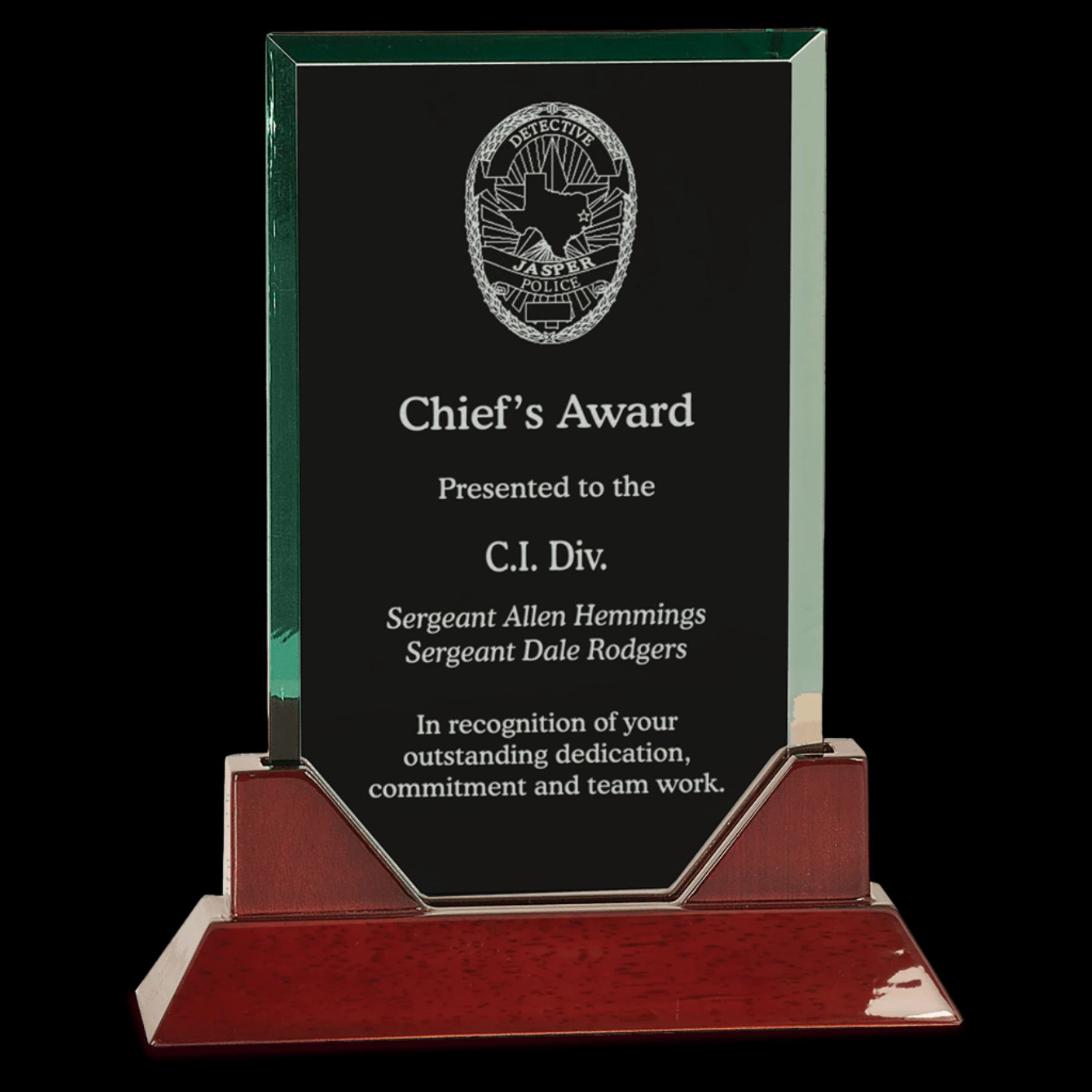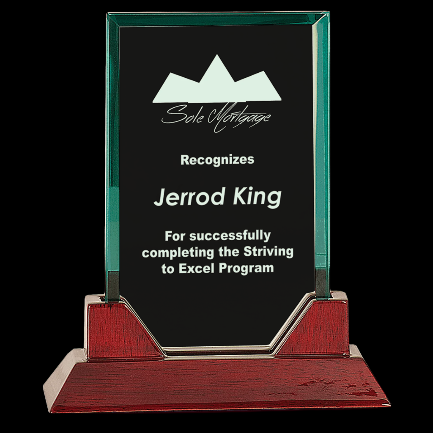Jade Rectangle Prestige Glass with Rosewood Piano Finish Base