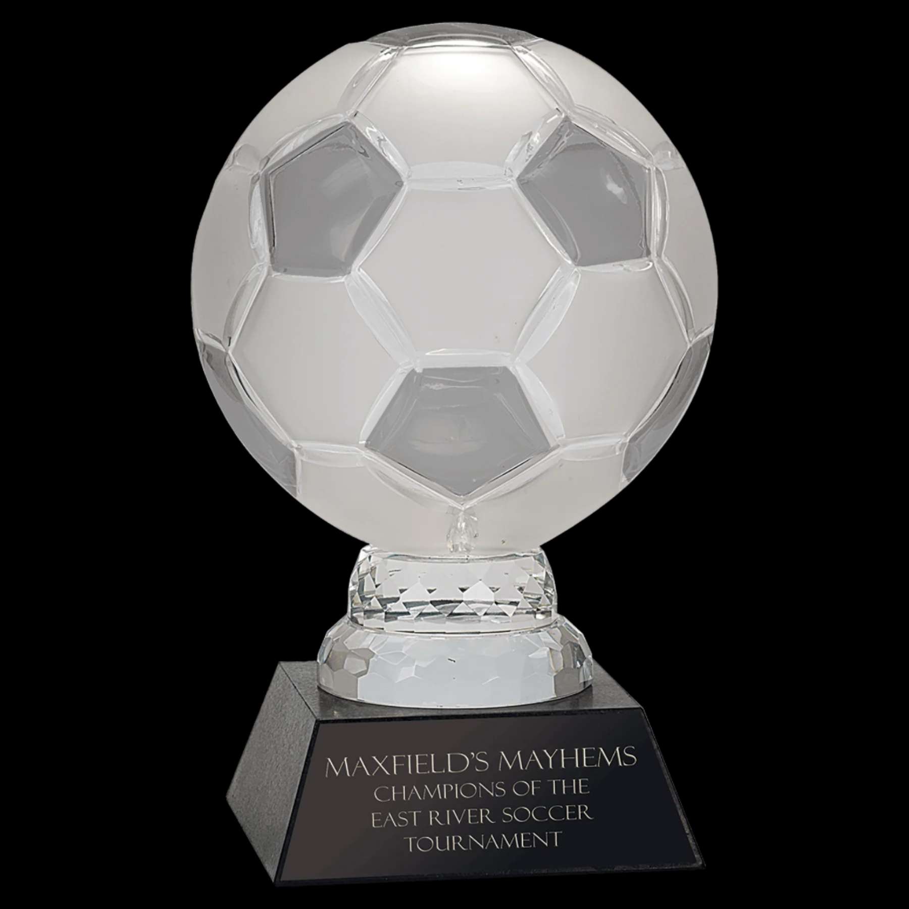 Glass Sport Balls are Mounted on a Marble Base. Ball is Hollow. Available in Multiple Sizes and Sports.