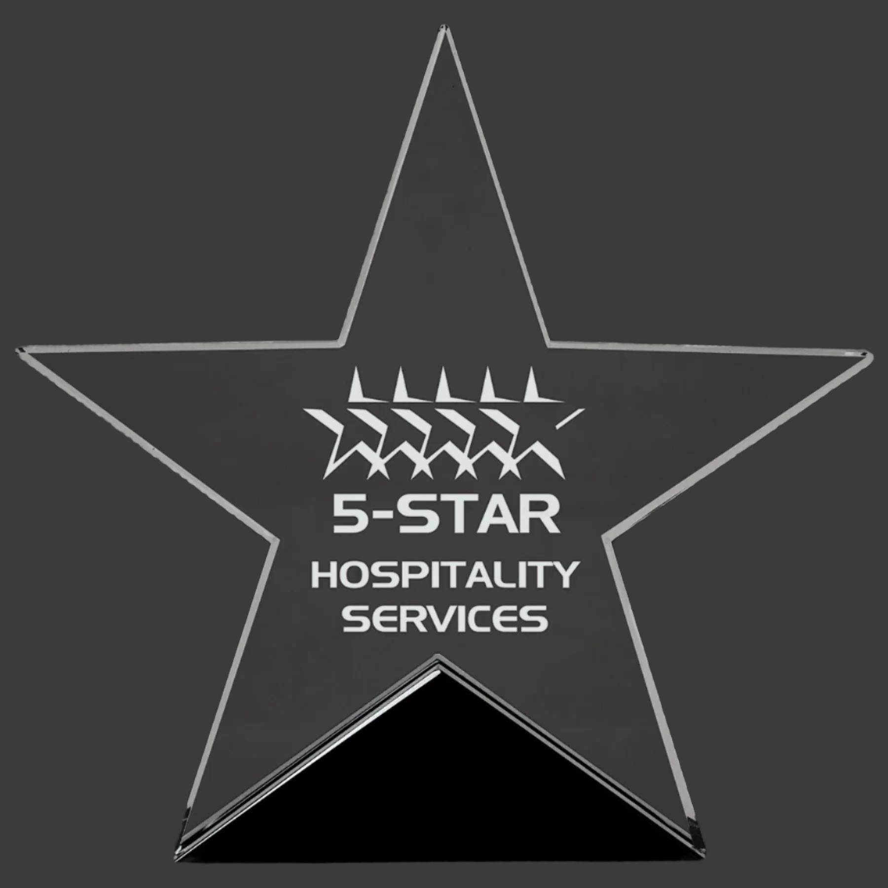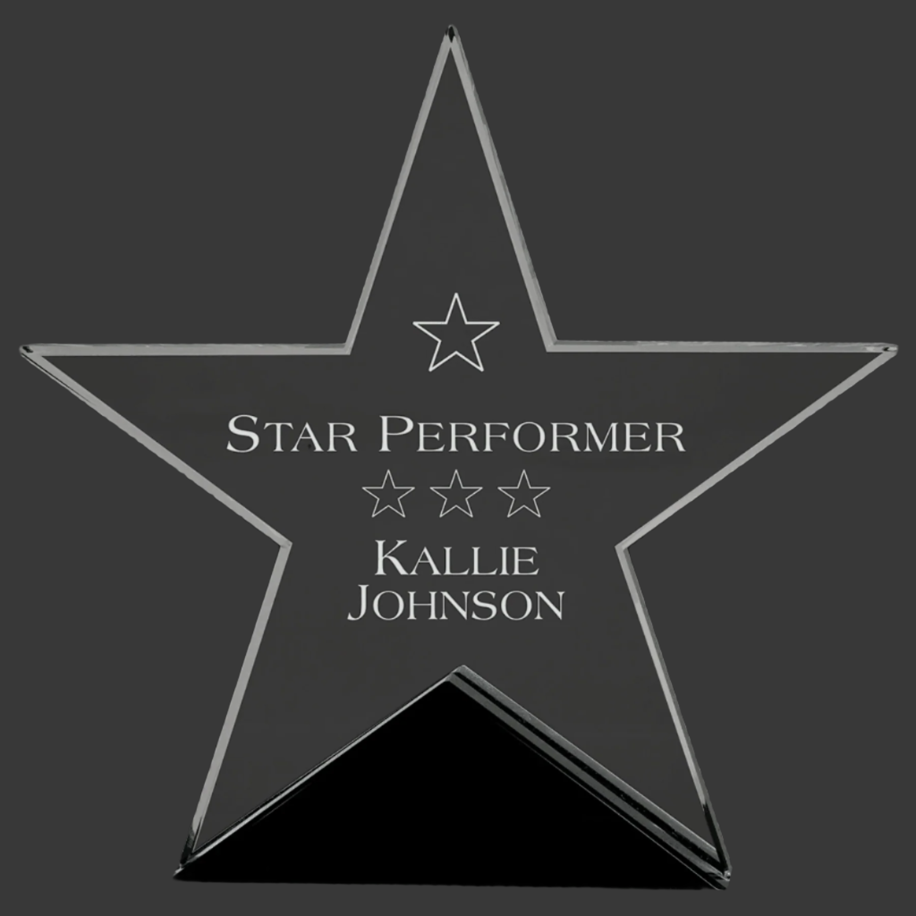 This 1-inch thick Clear Glass Star mounted on a sleek black base offers a distinguished and professional award presentation. Its solid construction and elegant design make it an ideal choice for recognizing outstanding achievements with lasting impact. Perfect for corporate events, ceremonies, or special recognitions, this award combines clarity and sophistication to honor excellence.