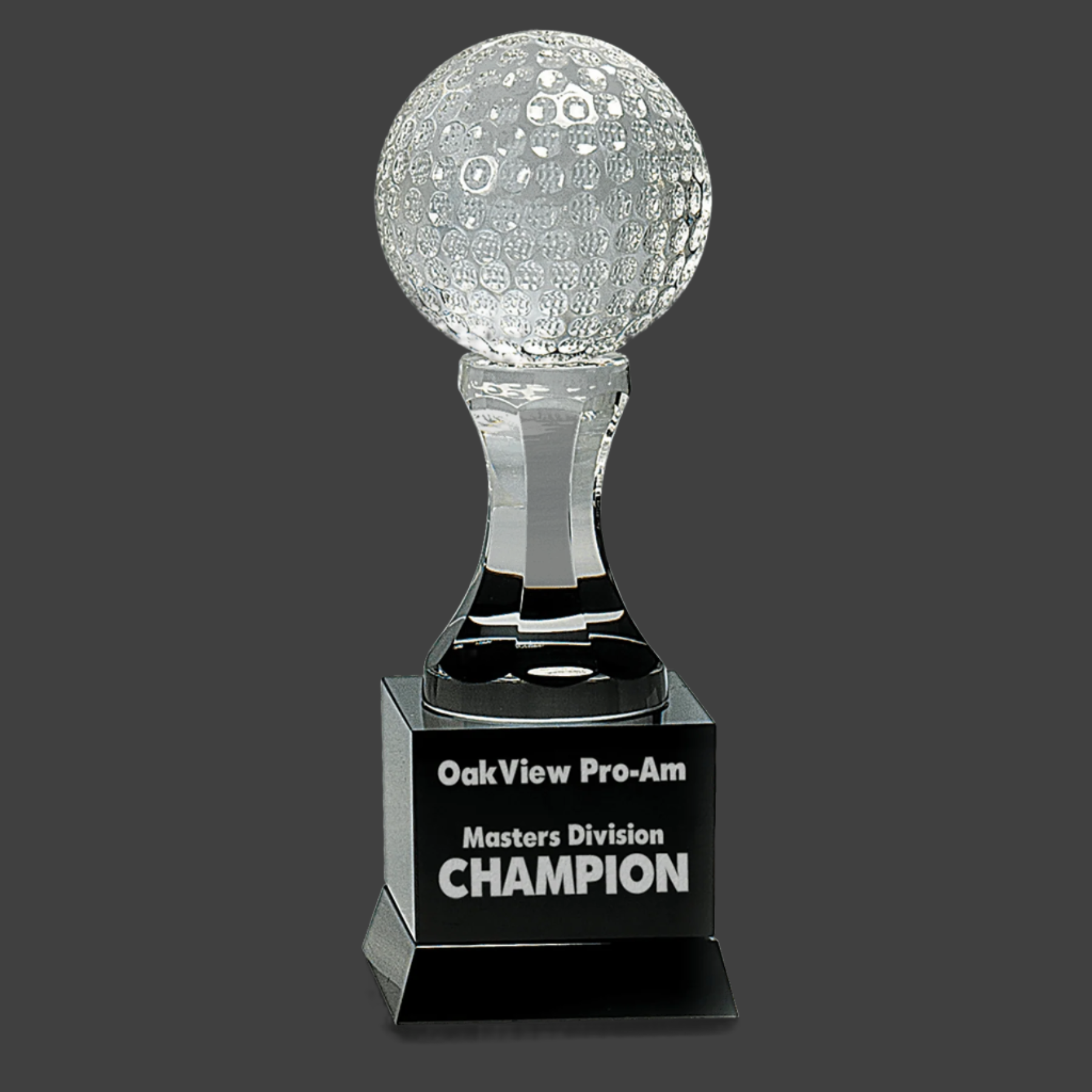 Our Golf Crystal is Handmade and May Vary Slightly in Size. Golf Ball Made of Optic Crystal on Clear Pedestal is Attached to Black Base. Packaged in a Lined Gift Box.