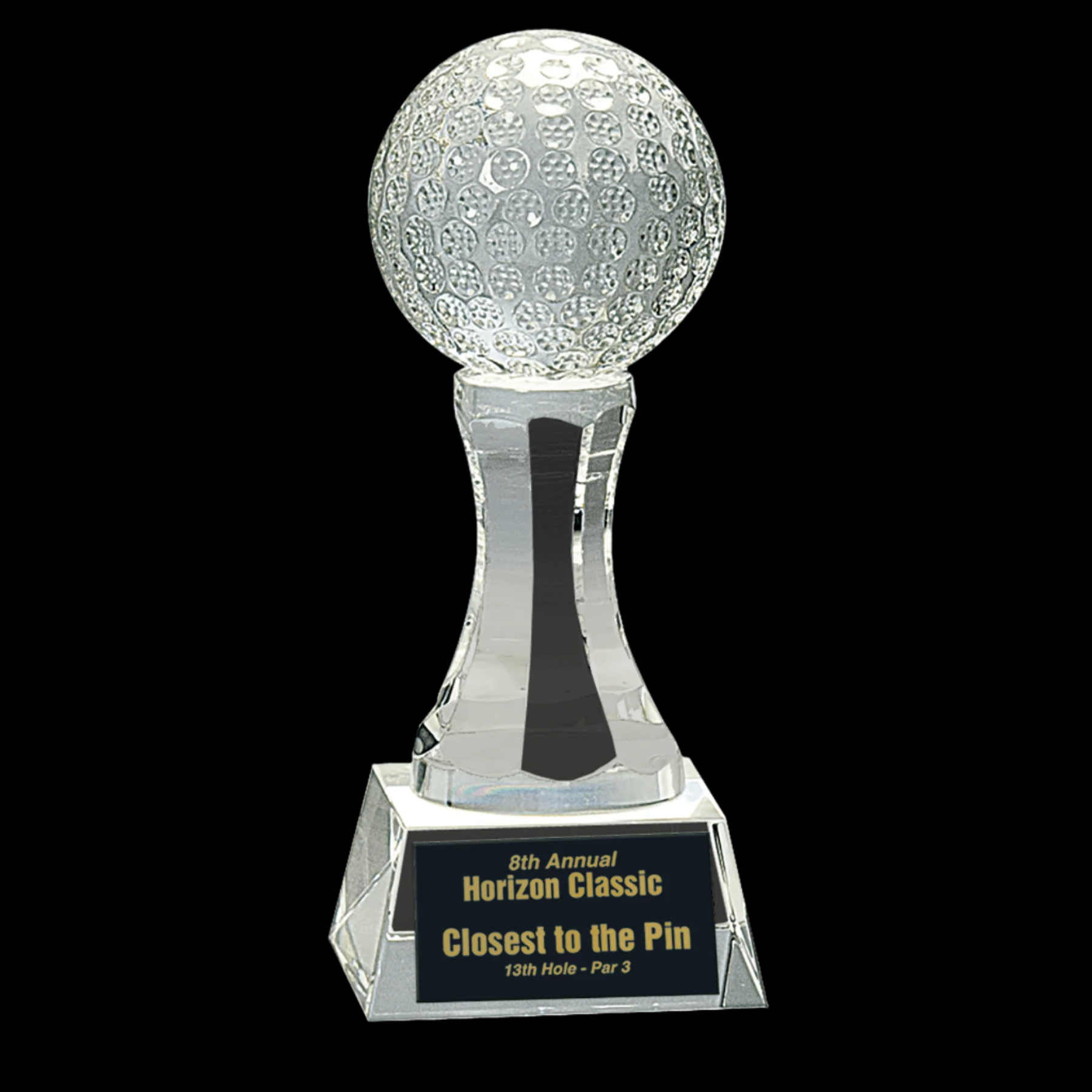 Crystal Golf Ball On Clear Pedestal Base
