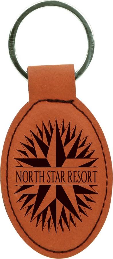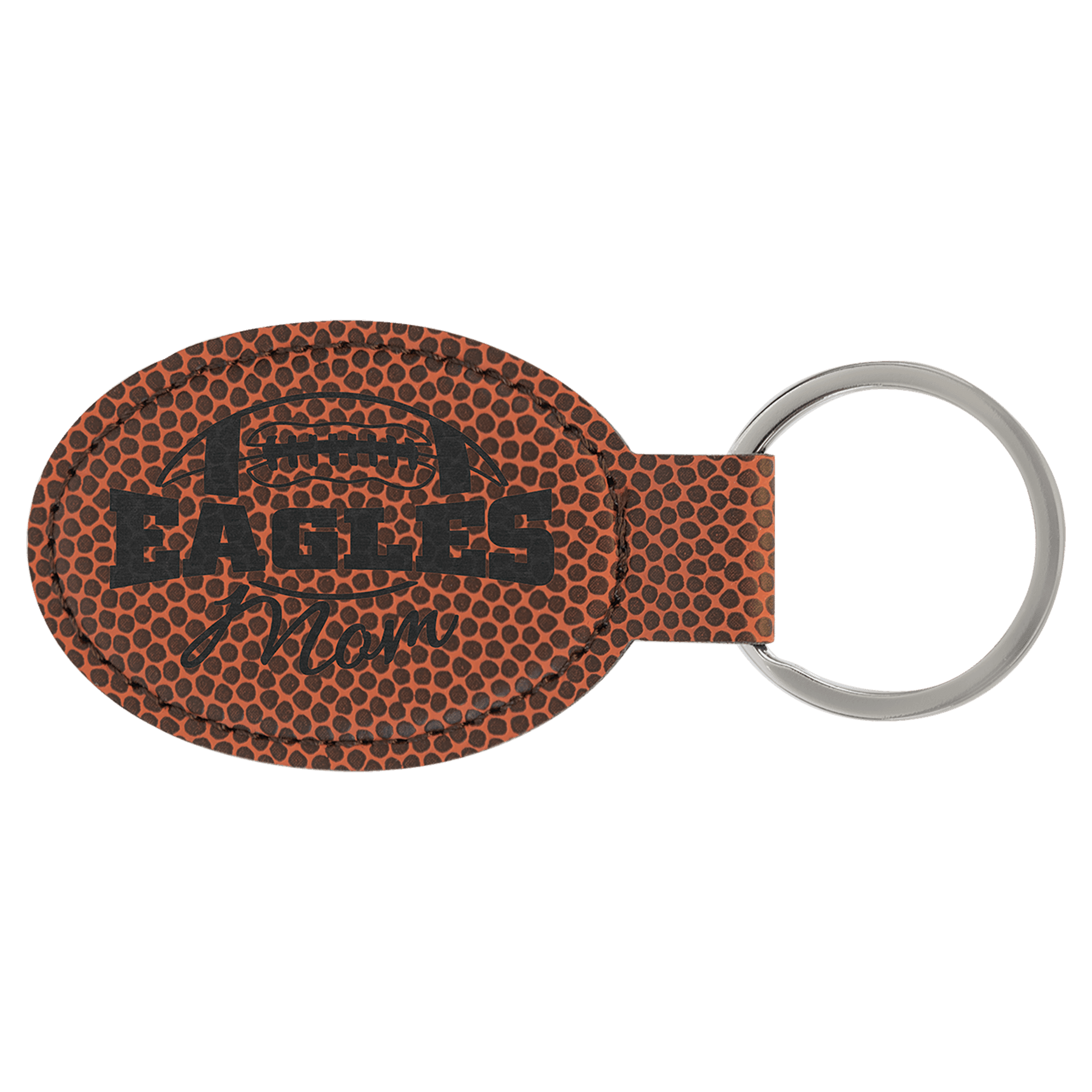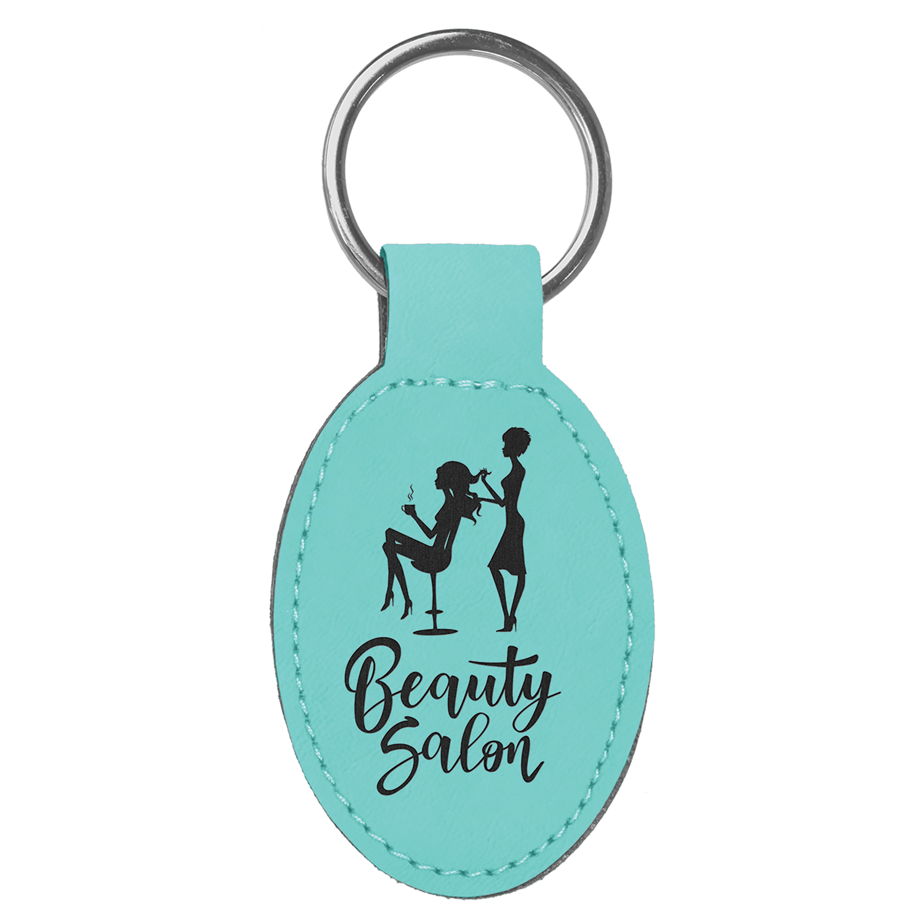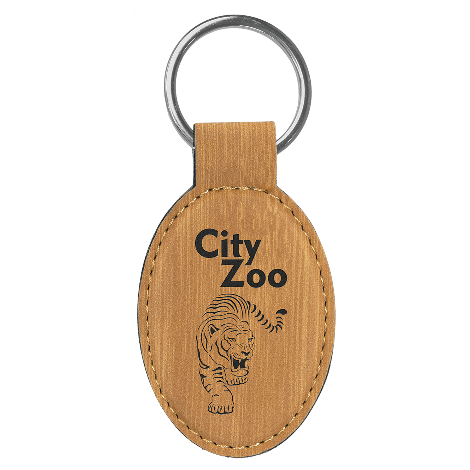 Crafted from durable zinc alloy metal combined with a refined leatherette finish, this oval keychain measures 3" x 1.75". Its sturdy construction ensures long-lasting use, while the leatherette surface offers a sophisticated look and comfortable grip. Ideal for securely organizing keys with a touch of elegance.