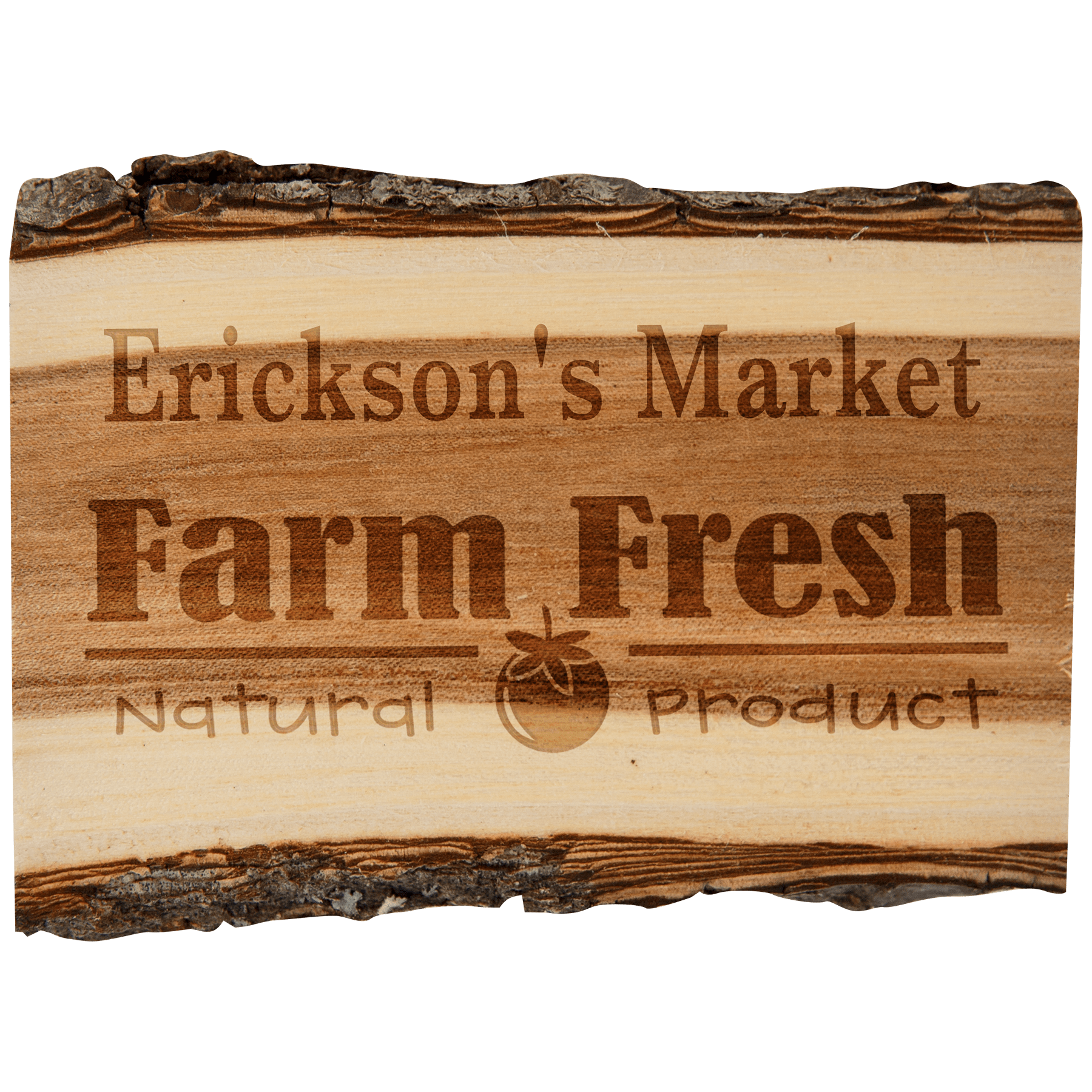 Crafted from genuine elmwood, this 2" x 3.25" live edge log magnet retains its natural bark and texture, offering an authentic rustic appeal. Expertly engraved with your custom wording, it serves as a distinctive accent for eco-conscious individuals or those seeking a rugged, outdoors-inspired touch in their decor. Durable and unique, it combines natural beauty with personalized craftsmanship.