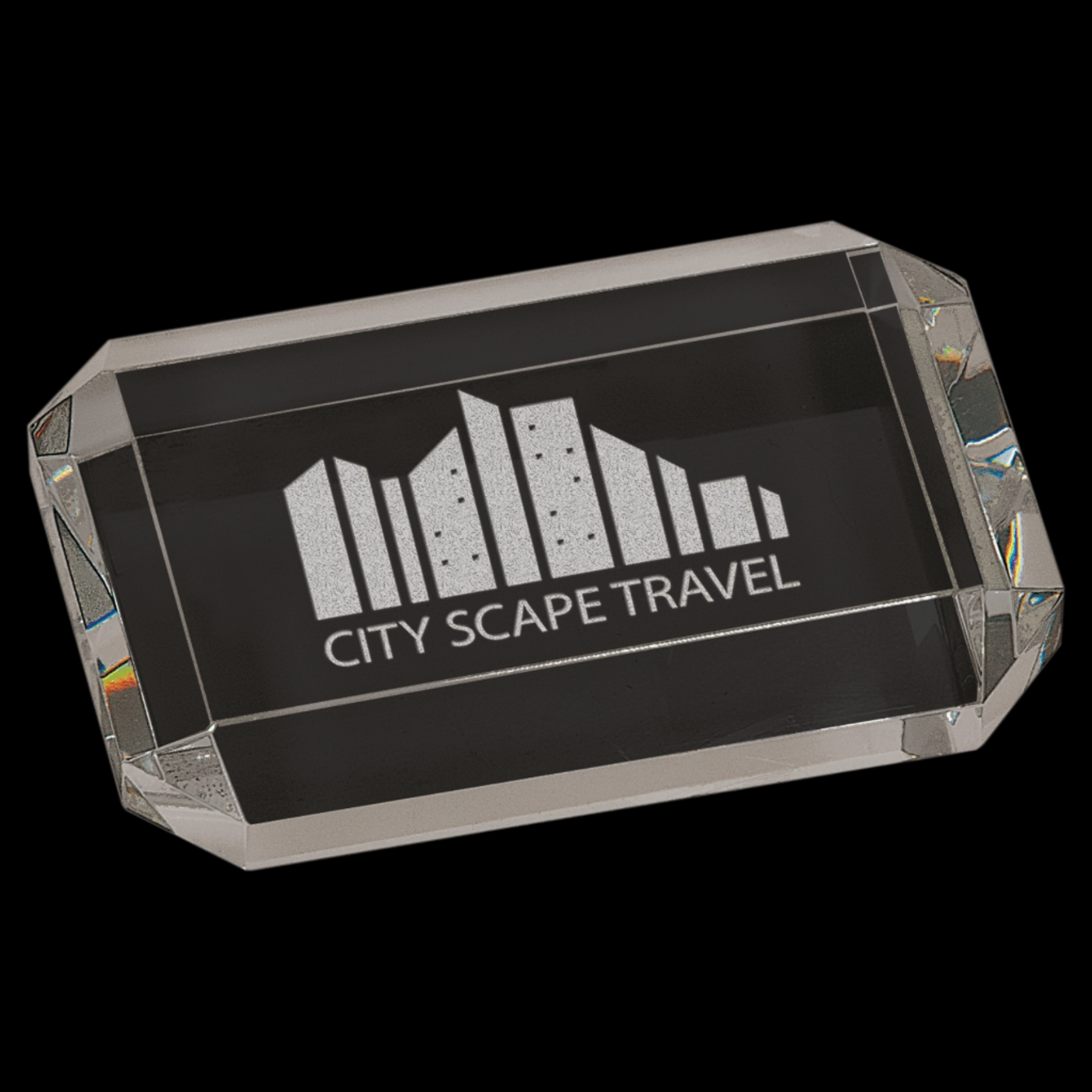 4" x 2.75" Crystal Rectangle Paperweight with Clipped Corners